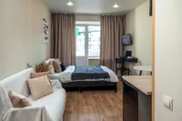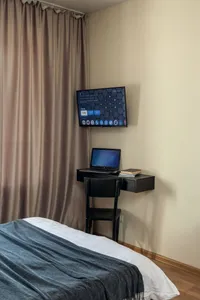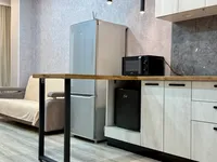 Уютная квартира-студия на пятом этаже нового дома. В квартире пластиковые окна, выходящие во двор, входная металлическая дверь, свежий ремонт. Есть все необходимое для проживания: ЖК ТV, кабельное более 200 каналов, интернет Wi-Fi, гладильная доска, утюг, фен, постельные принадлежности, полотенца, средства гигиены. Комната совмещена с кухней, укомплектованной современной бытовой техникой (керамическая варочная панель, микроволновая печь, холодильник, чайник), стол, стулья, посуда. В комнате двуспальная кровать, диван и комод, окно с выходом на лоджию. С/у совмещенный, новая ванна, унитаз, стиральная машина автомат. Большая просторная прихожая. Во дворе дома имеется современная детская площадка и хорошая парковочная зона. Рядом находится множество магазинов разной направленности, гипермаркеты «Аллея», «Командор», спортклуб «ГориллаФит», различные кафе «Планета», «Кавказская пленница», «Сытный дворик», аптеки, банки, рядом с домом автобусная остановка. Все фотографии соответствую действительности. В квартире чисто и по-домашнему уютно. Курение в квартире запрещено. Делаем отчетные документы. Для увеселительных мероприятий не сдаем. Работаем ежедневно, круглосуточно.
