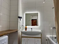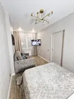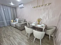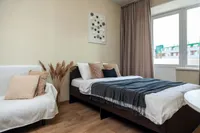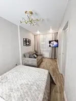 Представляем вашему вниманию комфортабельные двухкомнатные апартаменты площадью 40 м² в современном жилом комплексе. Квартира выполнена в современном стиле с использованием качественных материалов. Эргономичная планировка и продуманное зонирование создают атмосферу домашнего уюта. Количество комнат: 2 (изолированная спальня и просторная гостиная, совмещенная с кухонной зоной). Вместимость: до 6 человек (есть двуспальная кровать и раскладывающийся диван в спальне, а также раскладывающийся диван в гостиной).