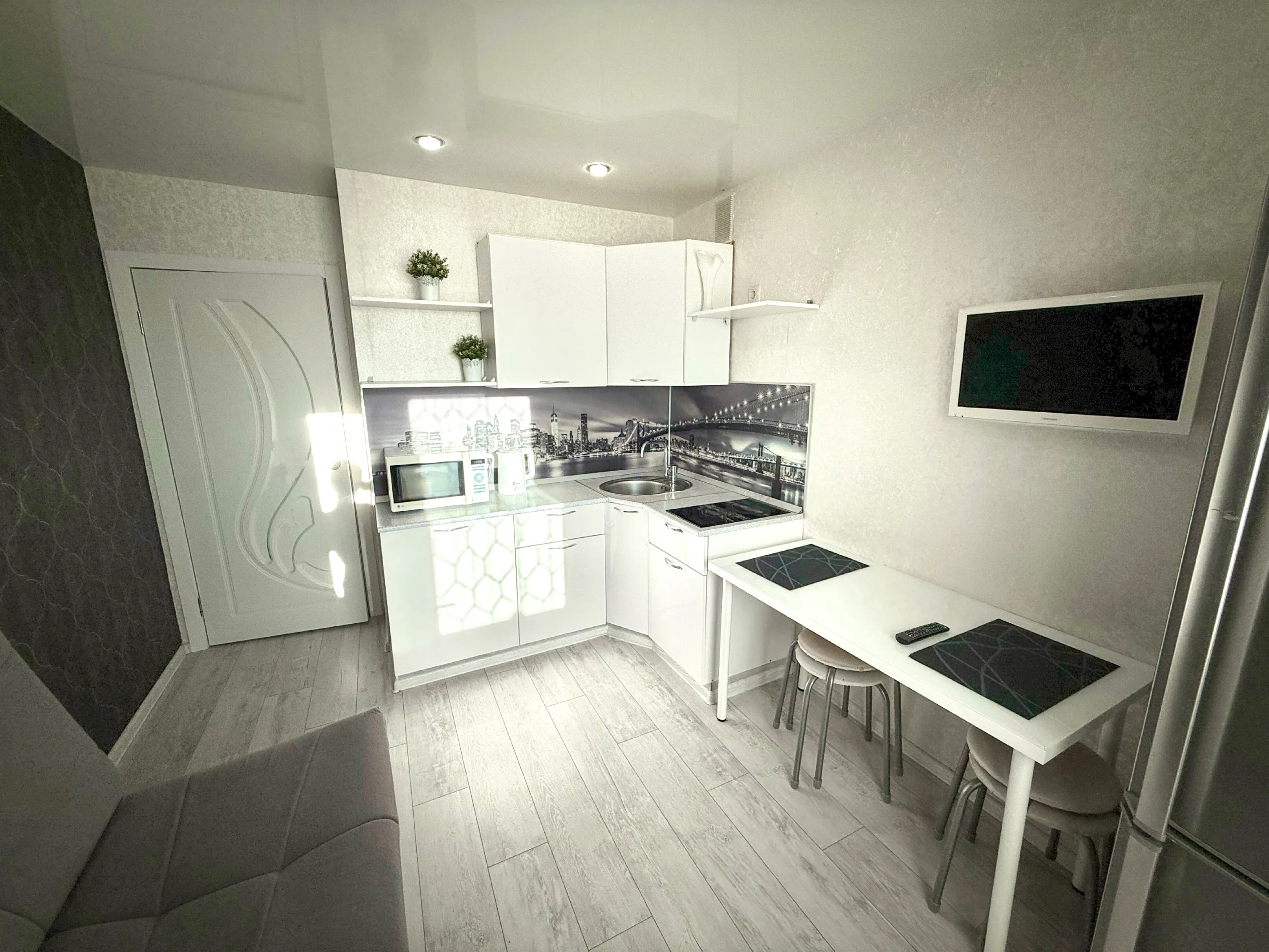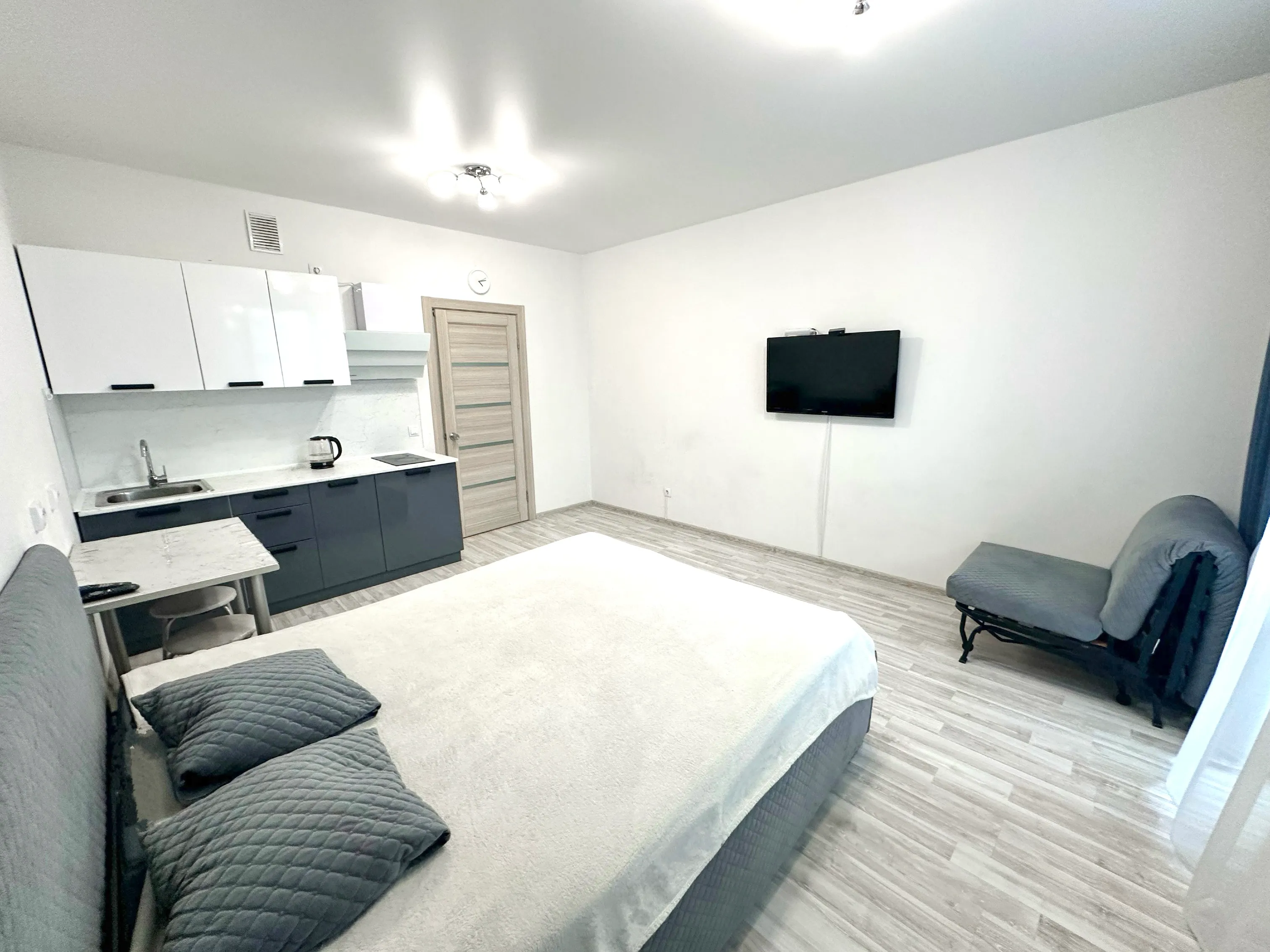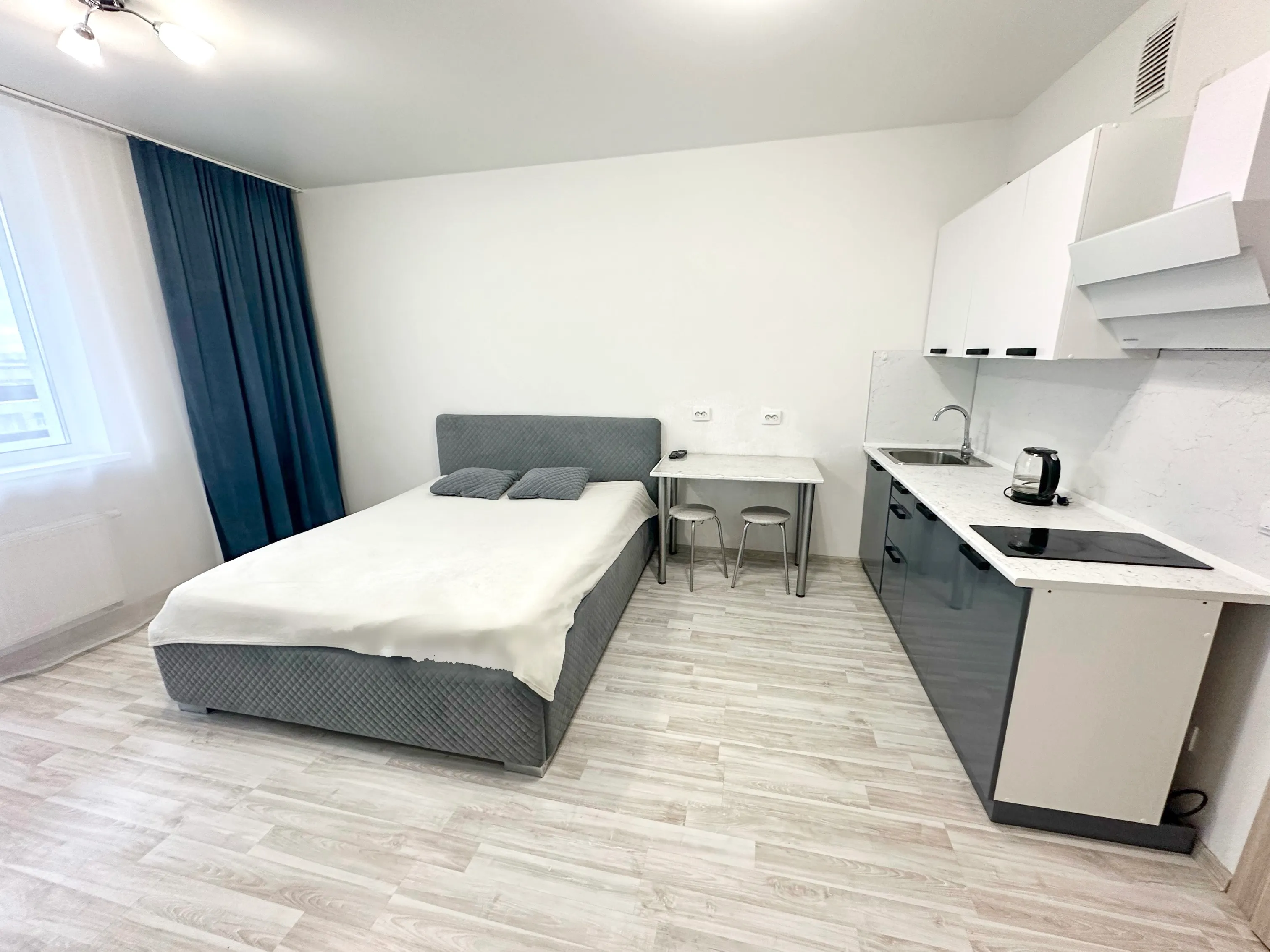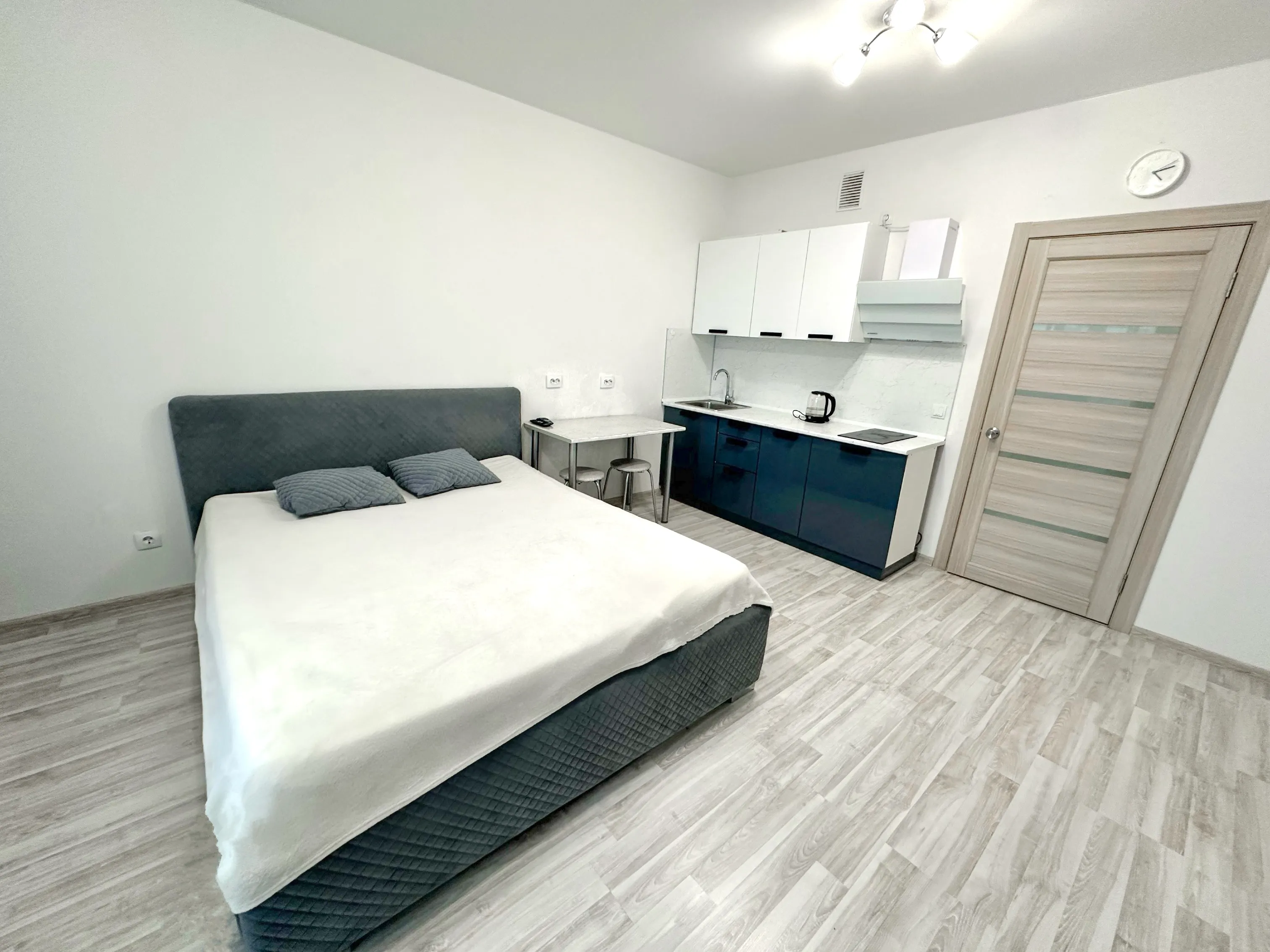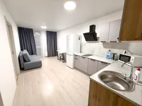 Студия полностью укомплектована всей необходимой мебелью и бытовой техникой. Для каждого гостя предоставляются постельное бельё, полотенца и туалетные принадлежности. Бесплатный Wi-Fi и Smart TV.