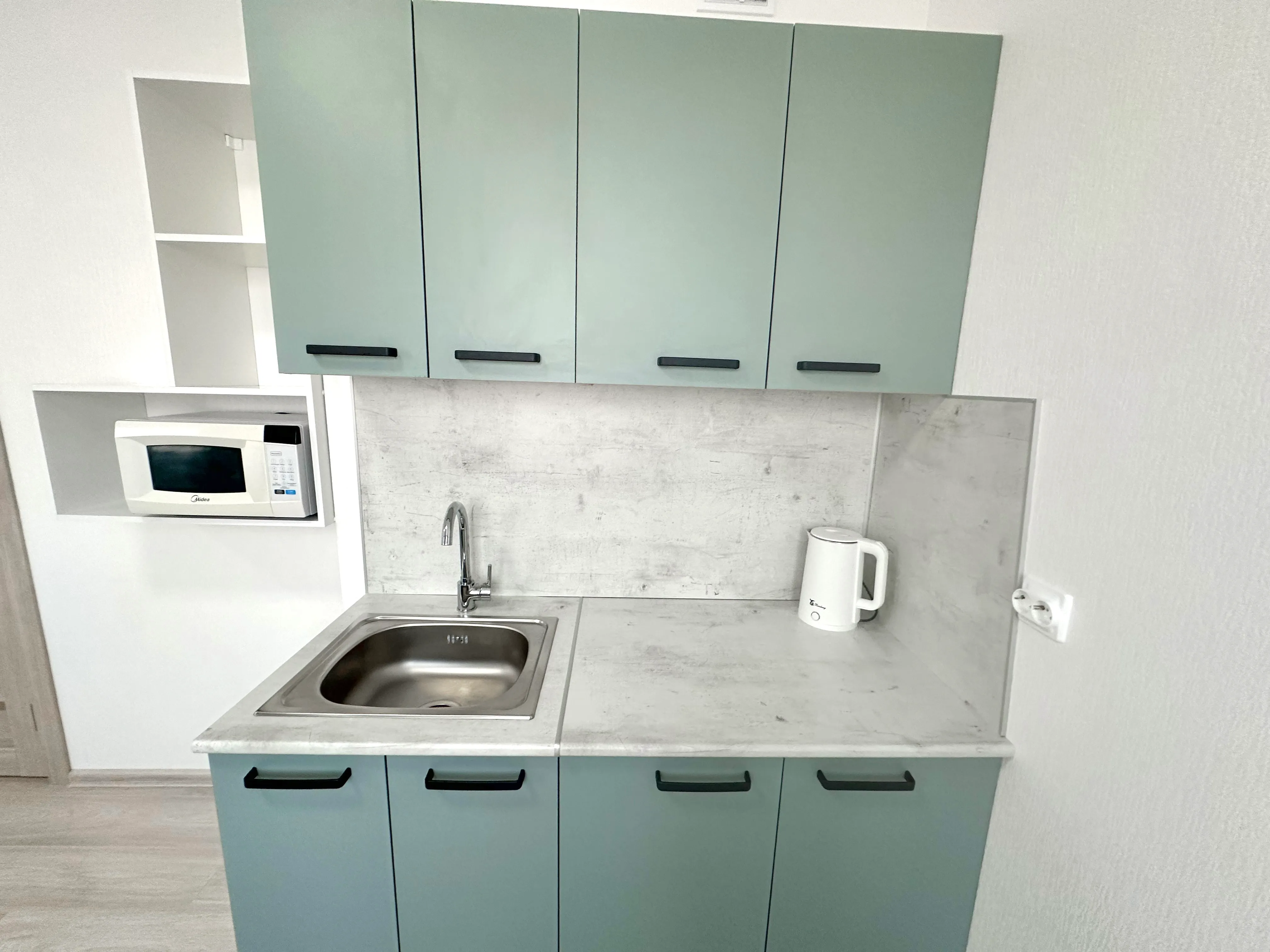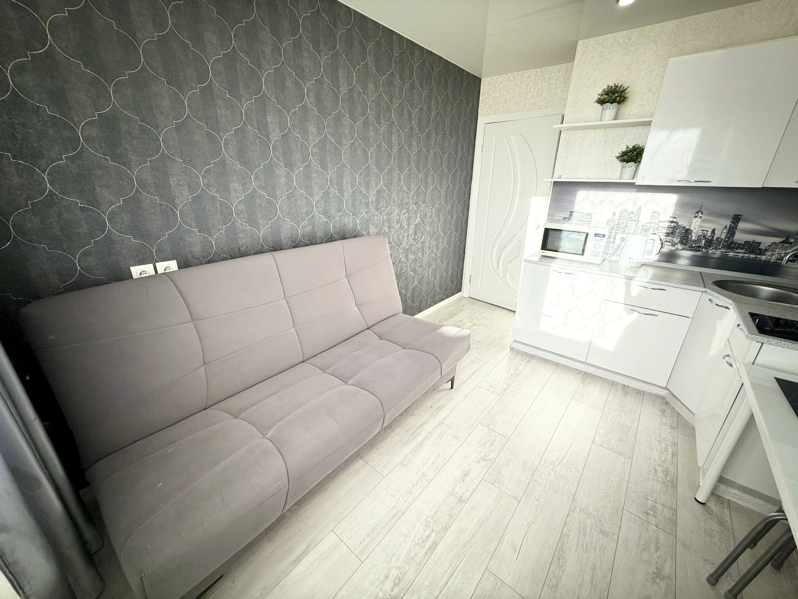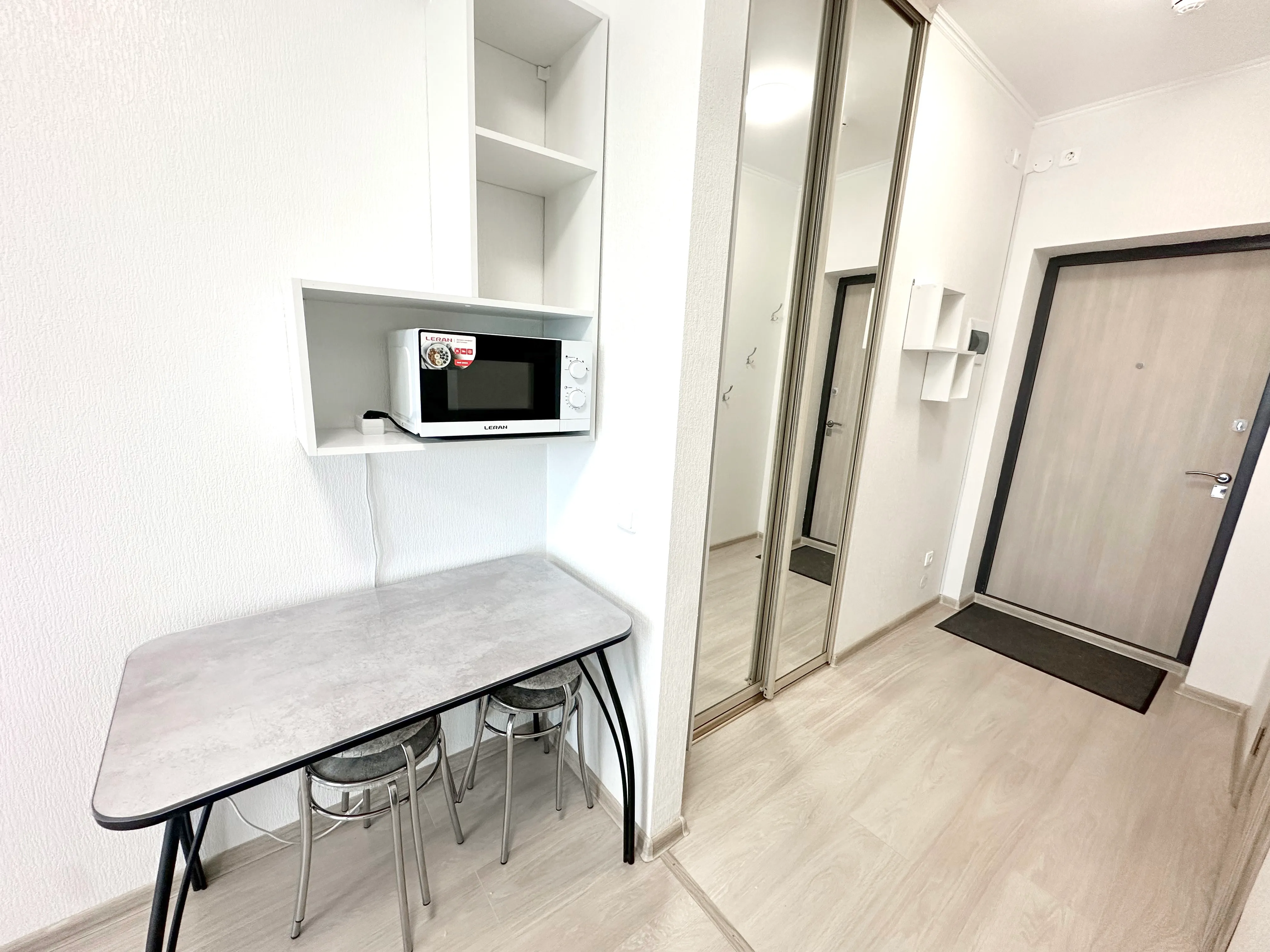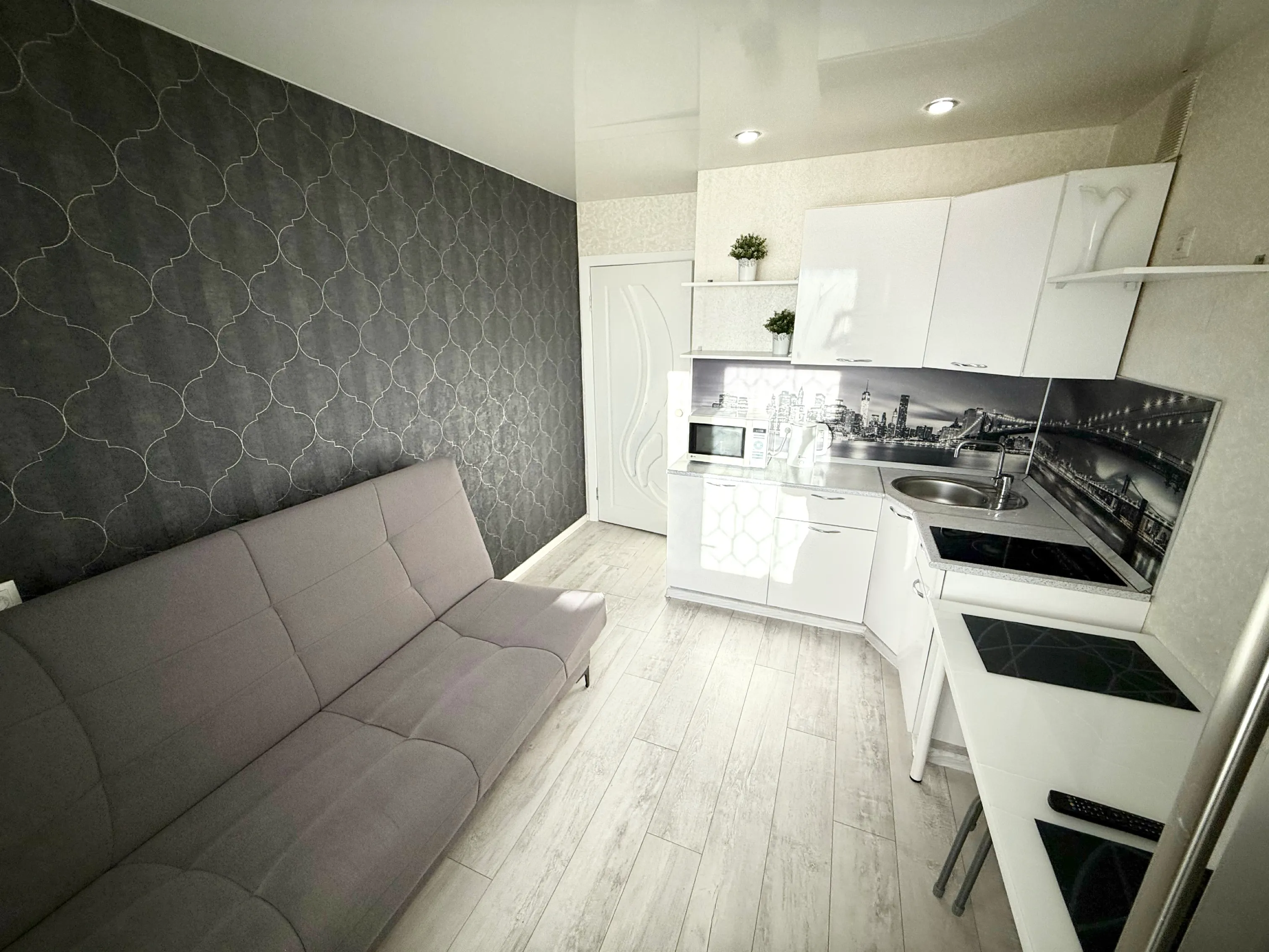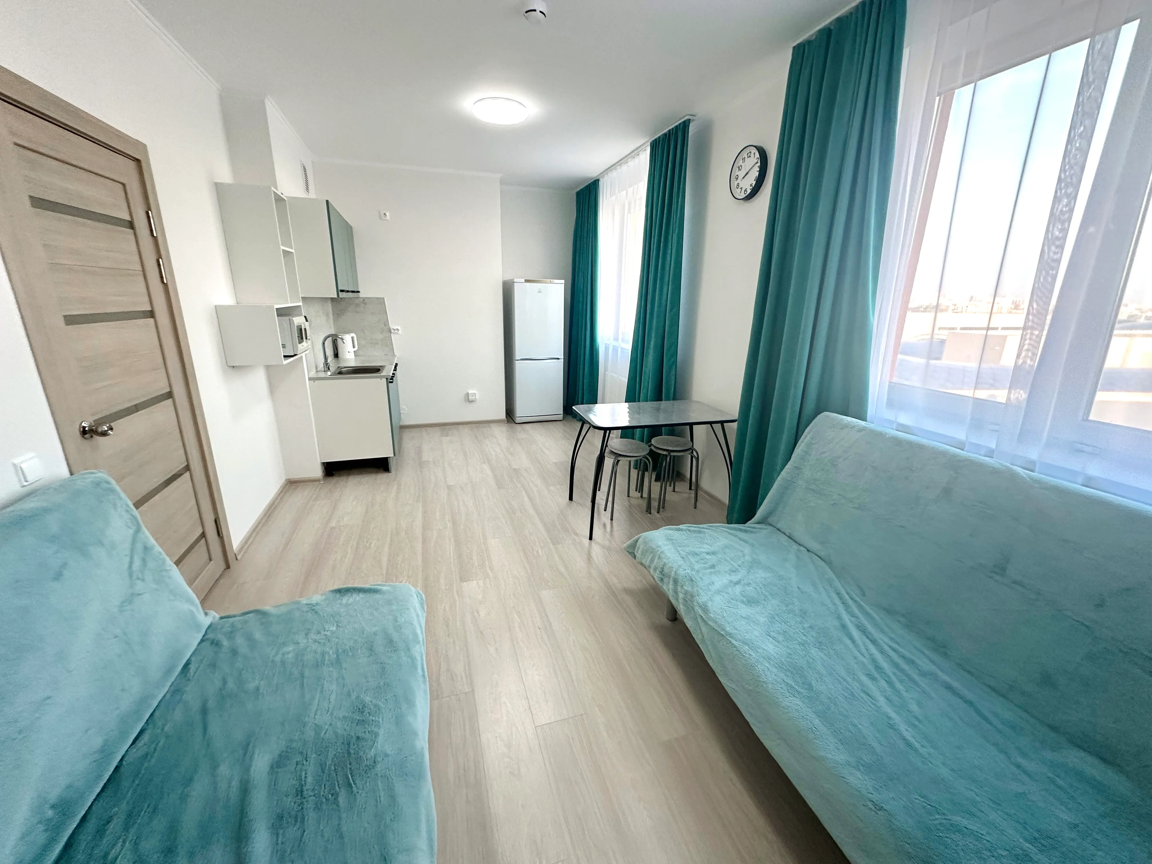 Студия полностью укомплектована всей необходимой мебелью и бытовой техникой. Для каждого гостя предоставляются постельное бельё, полотенца и туалетные принадлежности. Бесплатный Wi-Fi и Smart TV.