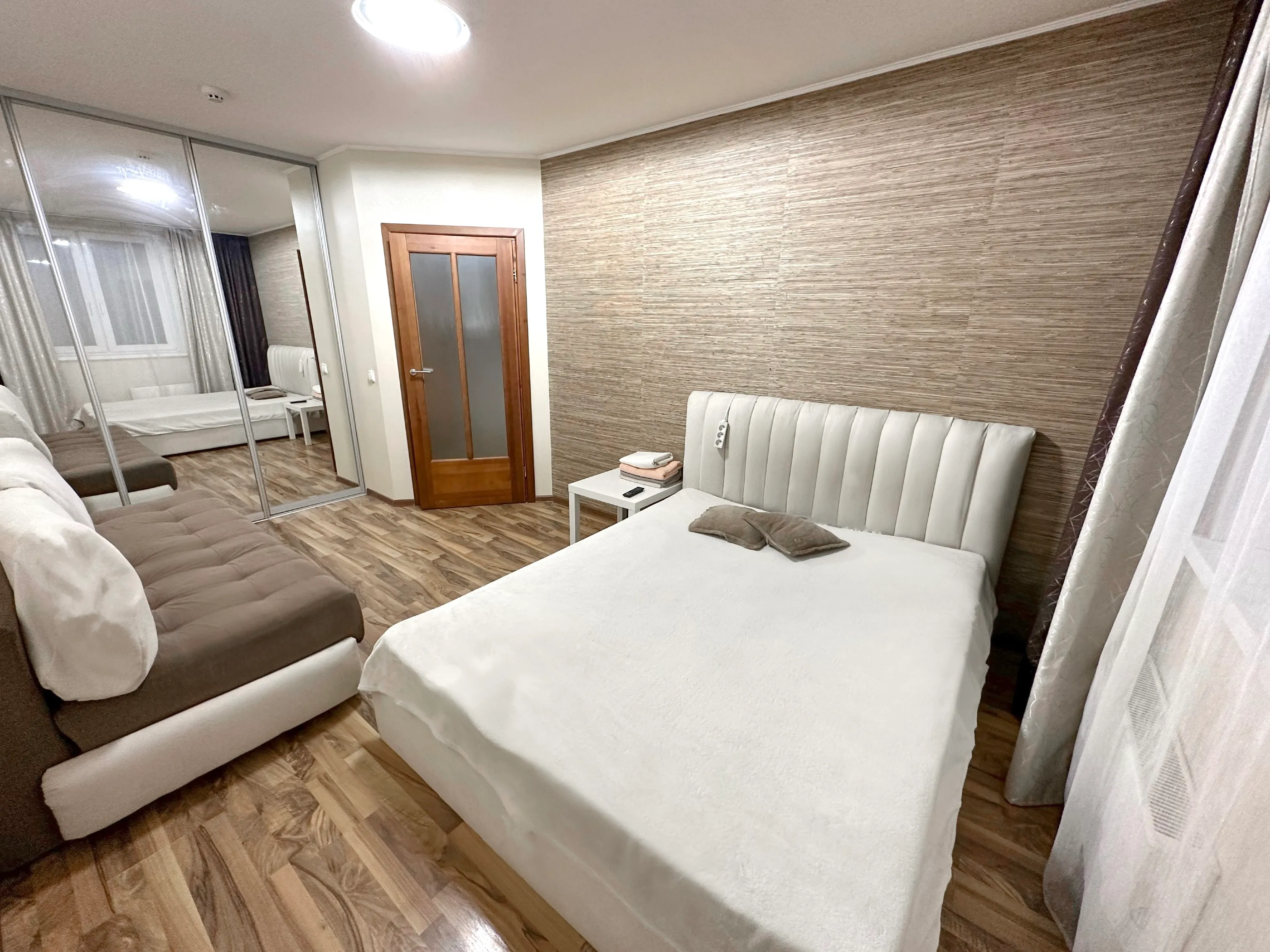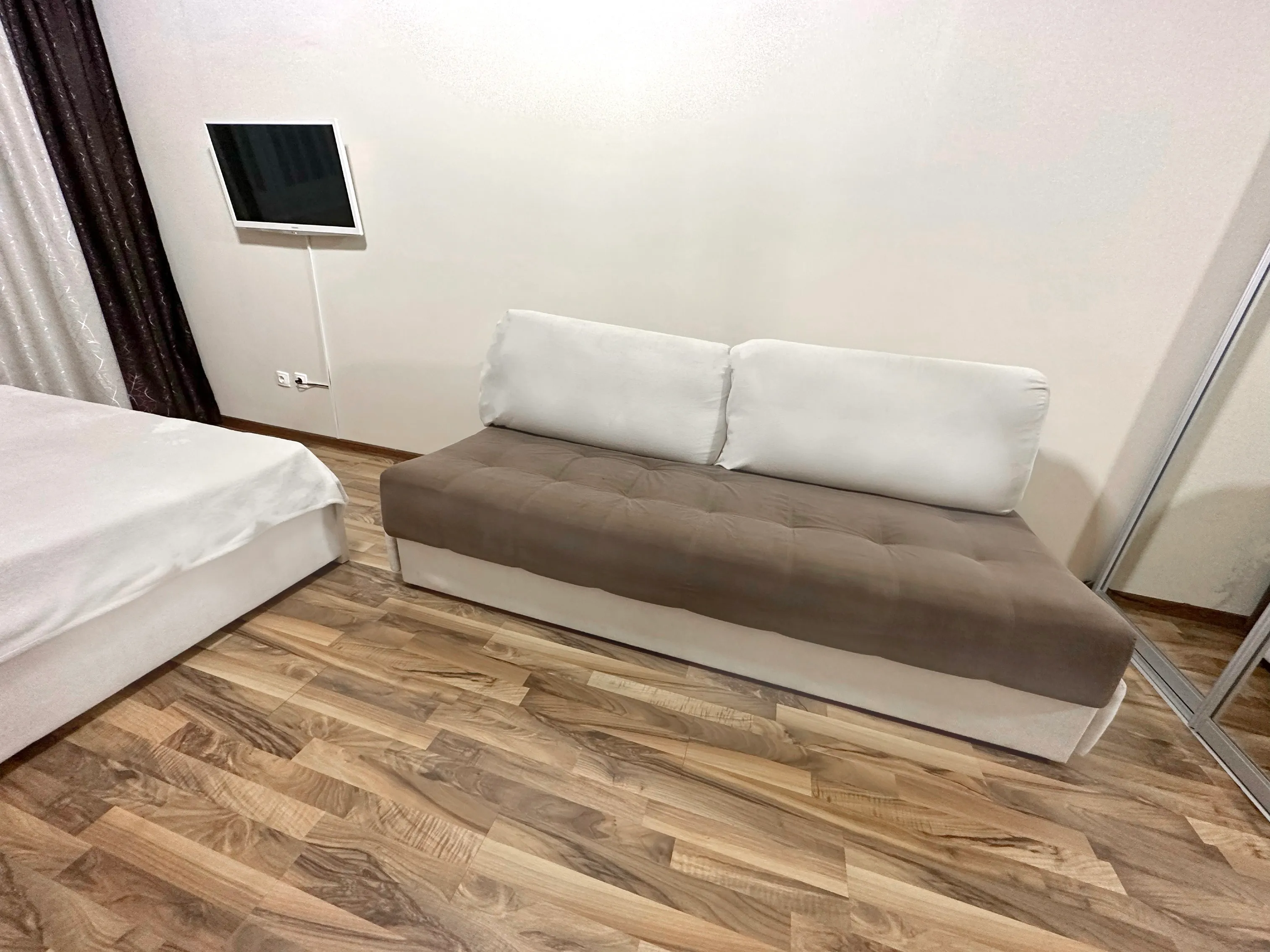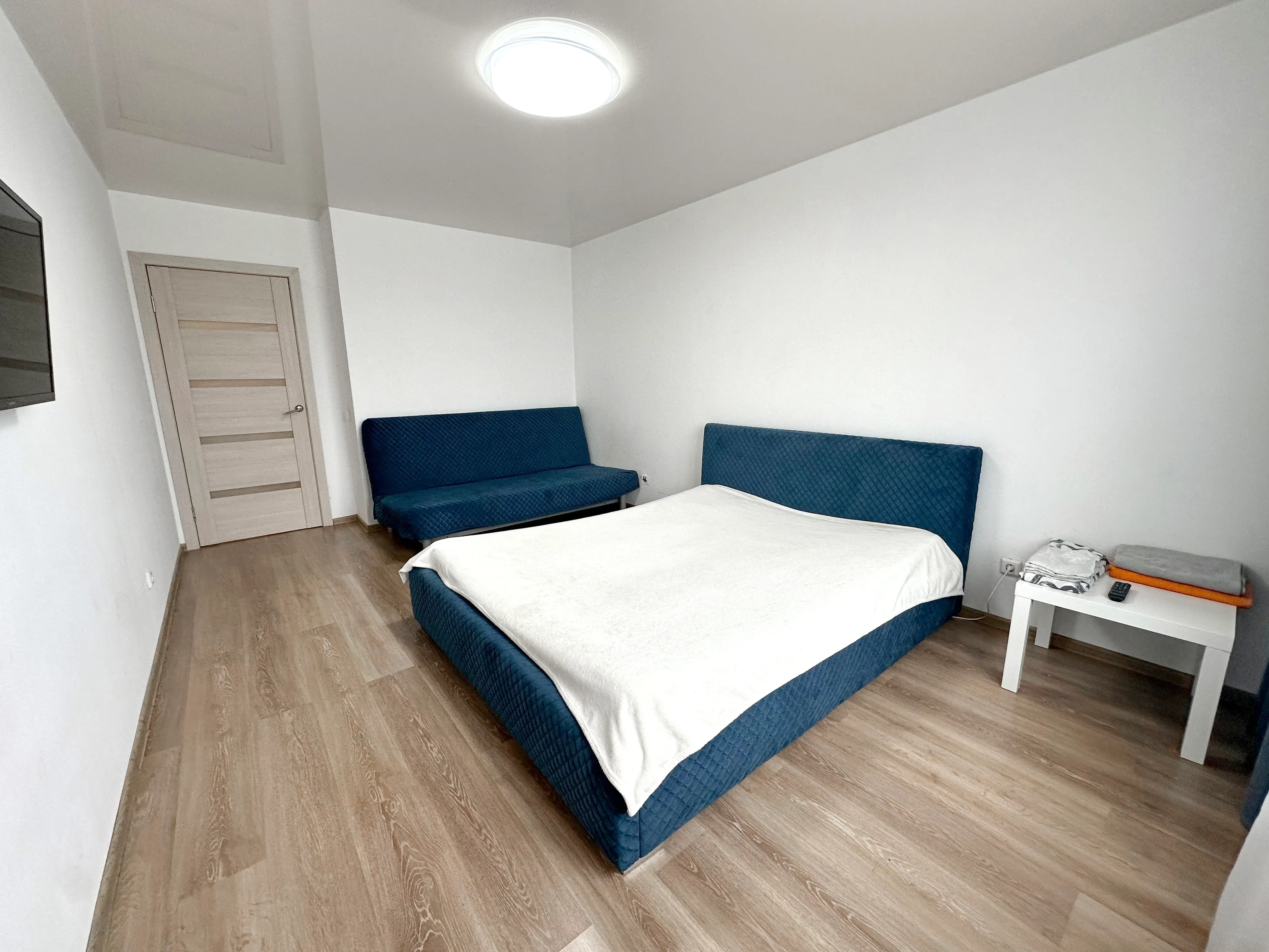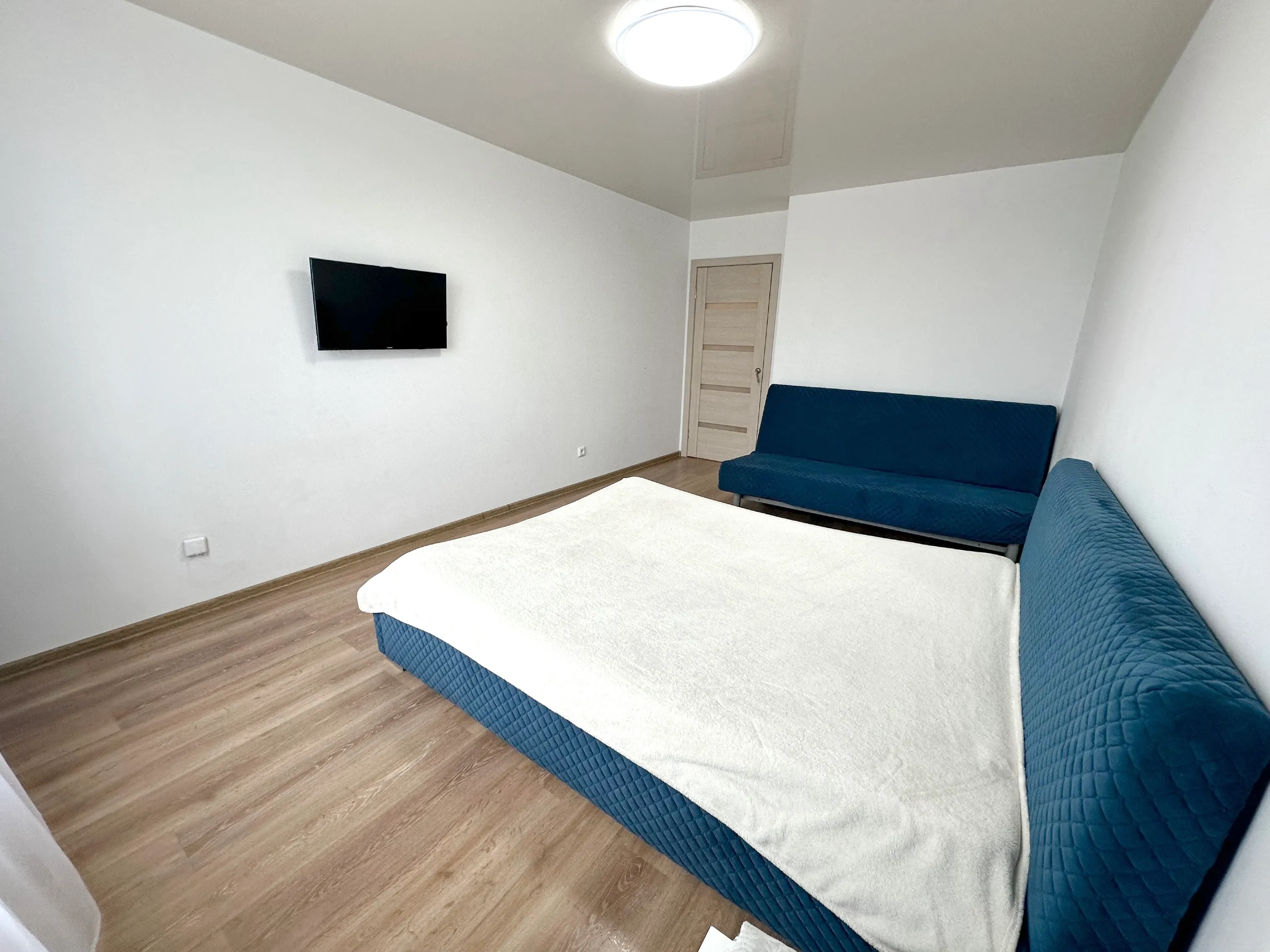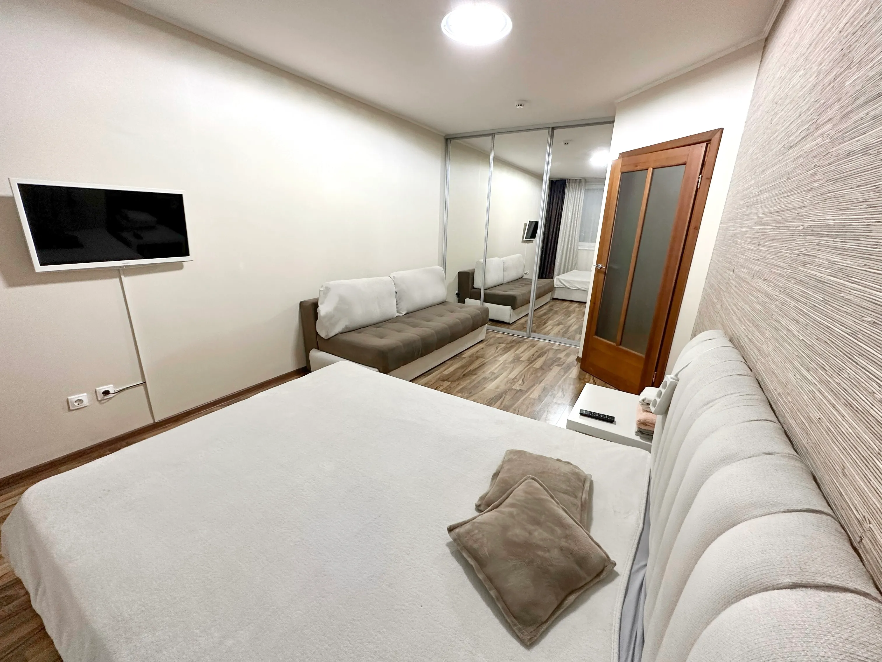 Комната с большой кроватью, диваном, телевизором с wi-fi, кондиционером. Предоставляется постельное бельё, полотенца.