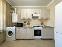 Здесь есть вещи необходимые для жизни и отдыха: посудомоечная машина, стиральная машина, газовая печь, микроволновая печь, чайник, автоматическая кофемашина, посуда для приготовления пищи, утюг, гладильная доска, сушилка и вместительный холодильник.