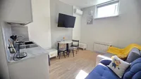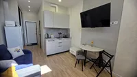 - Дополнительные удобства: В студии также предусмотрены все необходимые предметы для комфортного проживания, включая постельное белье, полотенца и кухонные принадлежности.
