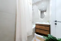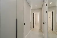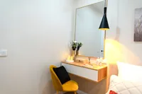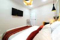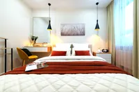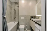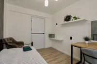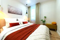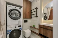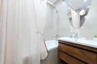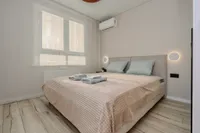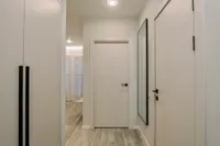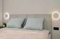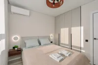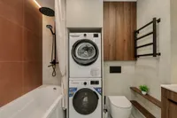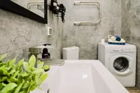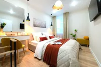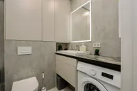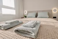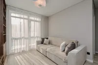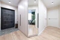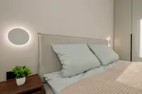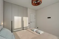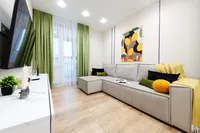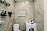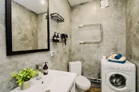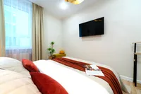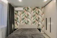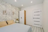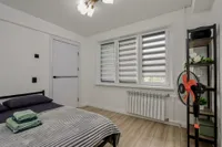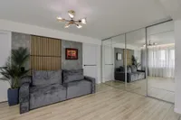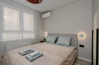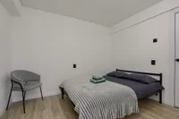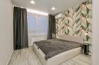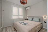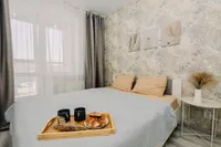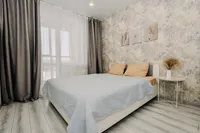 Однокомнатная квартира обустроена всем необходимым для комфортного проживания: двухспальная кровать, диван кровать, прикроватные тумбочки, шкаф для одежды, комод, банкетка, гладильная доска, утюг, сушка для белья.