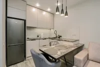 Пpемиум eвpо-двушка с дизайнерским рeмонтoм в ЖК «Утро на Репина». Проcтopнaя квaртира c oткpытым балконом и coвpeмeнным интеpьepом — coчетание кoмфоpта и эстeтики. Пoдходит для paзмещения до 4 гoстей. ✅ Прeимущеcтвa кваpтиpы: • Дизайнеpский ремонт и cовременные матepиaлы • Полный комплект бытовой техники • Уютная зона отдыха с большим ТВ • Комфортная кровать + диван — для полноценного сна • Панорамный балкон с видом на оживлённую улицу Горького — светло и атмосферно • Рабочее место — удобно для командировок и дистанционной работы Интерьер и атмосфера: Сдержанные пастельные оттенки, современные линии, вдохновляющие акценты. Пространство пропитано лёгкой, свежей атмосферой — для отдыха, работы и приятных вечеров. Зоны и оснащение: · Кухня‑гостиная: техника, комплект посуды, обеденная зона, диван, ТВ. · Спальня: удобная двуспальная кровать, система хранения. · Санузел: ванна, современная отделка, зеркало с подсветкой, свежие полотенца, стиральная и сушильная машинка. · Балкон: максимально открыт — позволяет наслаждаться видом на улицу и городскую жизнь. · Рабочее место: стол, стул — удобно для ноутбука. Дополнительно: Стабильный Wi‑Fi, профессиональная уборка перед каждым заездом, свежее бельё и качественный текстиль. Всё соответствует фото. Рядом с домом: Березовая роща (в народе Козий парк) - в котором находятся детские площадки, арт-объекты, облагороженный родник, качели, дорожки для катания. ТЦ «Омега», ТЦ «Эльгрин», ТЦ «Мой порт» (здесь находится круглосуточный супермаркет «Лента»), ТЦ «Аврора-парк», ТЦ «Флагман». Супермаркеты Пятерочка/гипермаркет Магнит, Сбер, аптеки, круглосуточный гипермаркет Лента в 5 минутах езды на машине или такси, пешком минут 30. Радиозавод ИРЗ, УДГУ, медакадемия ИГМА «Ростикс», «Вкусно и точка», «Чашка», чайхана«Пахлаван» в 10 минутах пешком. 15-20 мин на авто: Зоопарк Центральная площадь ИЖГТУ, УдГАУ, Набережная Ижевского пруда и Ижевская пристань. Набережная р.Подборенки у ЖК Новый город, можно покормить уток. Для кого подойдёт: Для деловых поездок, романтического отдыха, прогулок с друзьями или семьёй — квартира сочетает стиль, удобство и атмосферу центра. Чистота и фото: Профессиональная уборка, качественный текстиль. Вы получите то, что видите — чисто, комфортно, красиво. Важная информация: Мы предусмотрели для Вас БЕСКОНТАКТНОЕ ЗАСЕЛЕНИЕ с возможностью въехать в квартиру в любое время суток. Не нужно ждать администратора, заселиться можно в любое время, ключ находится в кодовом боксе! Заселение: С 15:00, выезд до 11:00 следующих суток. ✅ Цена: Меняется в зависимости от дня недели, количества гостей, сроков проживания, праздников и выходных. Заселение при наличии паспорта Залог: 2000 руб., возвращается после уборки и проверки квартиры. ✅ Запрет на курение: Курение в квартире, на балконе и в санузле запрещено. Штраф 5000 руб. ✅ Запрет на вечеринки: Проводить вечеринки и увеселительные мероприятия запрещено. ❌ Не упустите шанс остановиться в самых уютных апартаментах Ижевска! Забронируйте прямо сейчас, и мы с радостью встретим вас! ✅