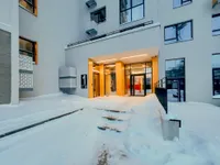 Входная группа дома имеет большой уютный холл, где можно провести встречи и переговоры,шесть высокоскоростных лифтов !