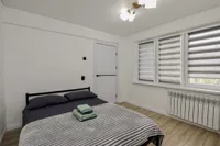 Однокомнатная квартира обустроена всем необходимым для комфортного проживания: двухспальная кровать, раскладной диван- кровать, шкаф для одежды,сушка для белья, гладильная доска, утюг.