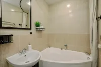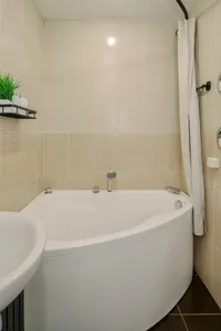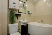Ванная комната под кафель. Всегда чистое постельное белье и полотенца, посудные принадлежности, чай, сахар, средства гигиены.