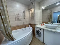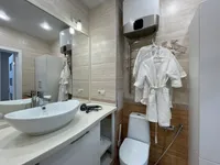 - просторная ванная комната для принятия душа, стиральная машина, водонагреватель, фен, полотенца, шампунь, зубные щетки, зубная паста, жидкое мыло, стиральный порошок.