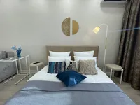 Квартира укомплектована всем необходимым для проживания. Полотенца, комфортное постельное белье, одноразовые тапочки , зубной набор. Имеется необходимая мебель, смарт тв,бытовая техника, фен, утюг, гладильная доска, кондиционер