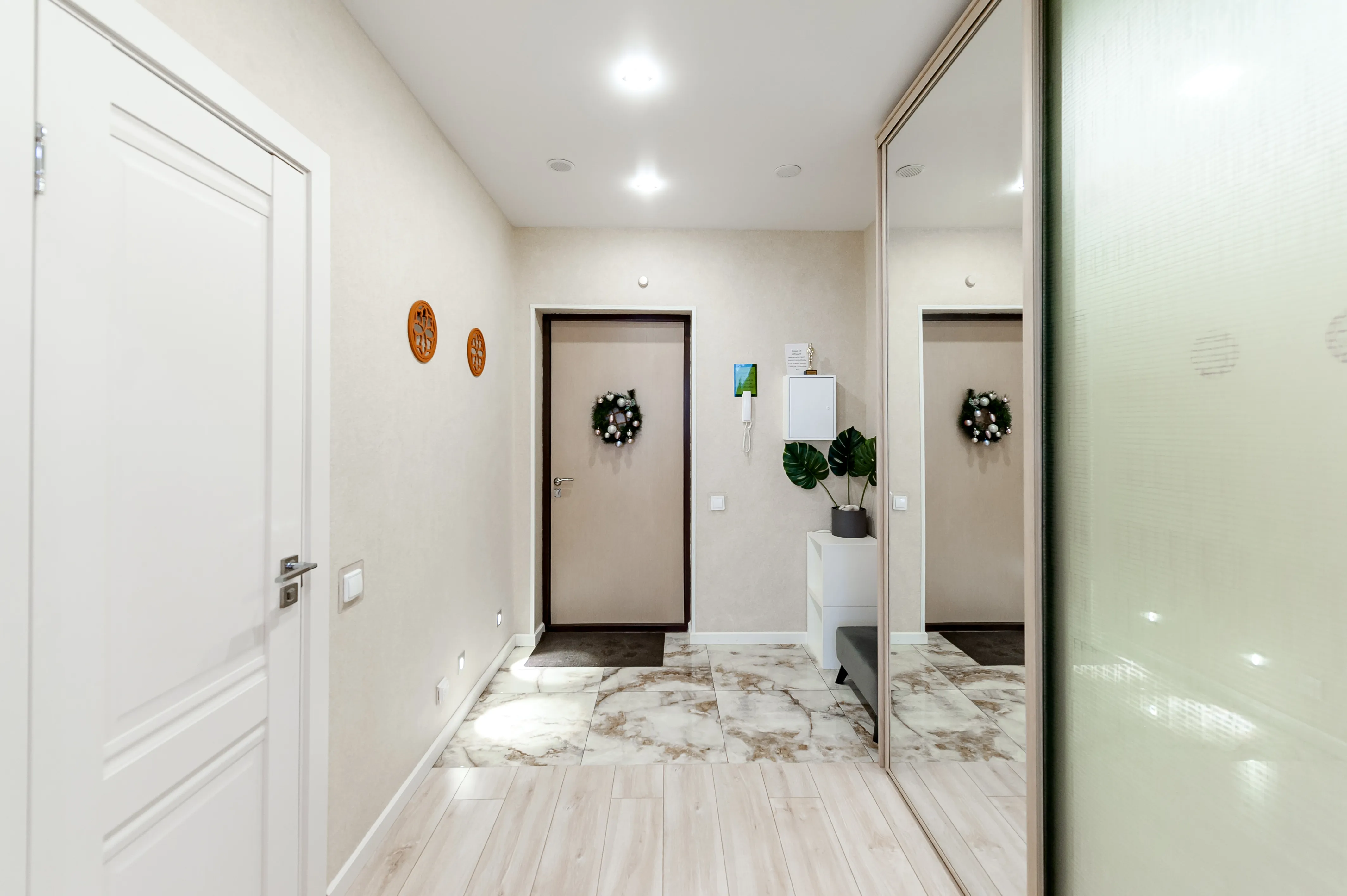 - вместительные гapдерoбные шкафы-купе в зале и в прихожей;