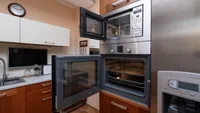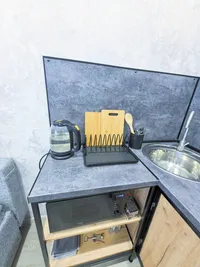 • Функциональная кухня: холодильник, СВЧ-печь, электрическая плита, чайник и комплект посуды