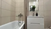 В ванной для гостей доступно: шампунь, гель для душа, мыло, фен, стиральная машина и стиральный порошок, чистые и мягкие полотенца для каждого гостя. Всегда есть горячая вода, так как установлен бойлер. И конечно в доступе есть утюг и гладильная доска, чтобы вы всегда выглядели безупречно!