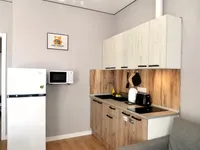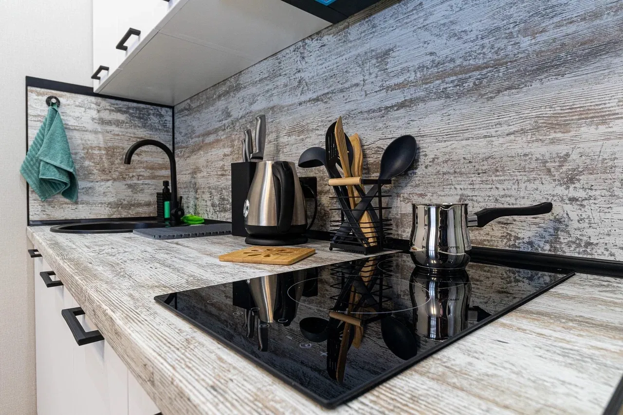 ✅ Наши гости могут готовить на полностью оборудованной кухне с бытовой техникой и посудой. Есть плита , вытяжка, электрический чайник,микроволновая печь и холодильник.