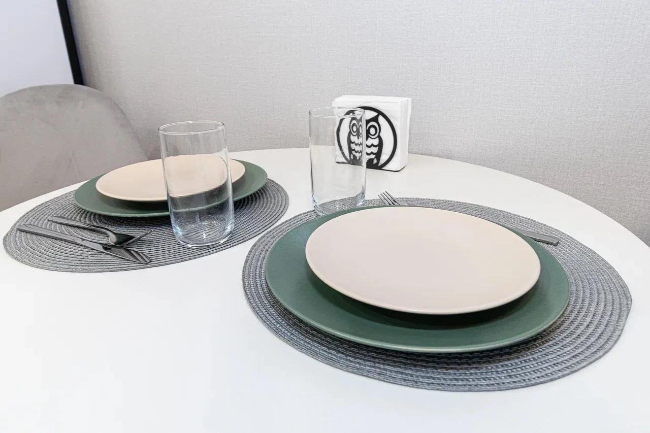 ☑️Полный комплект посуды и приборов.