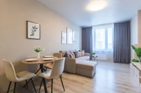Мы создаём все условия, в которых проживание наших гостей будет максимально комфортным и уютными, поэтому гарантируем - чистоту, отсутствие запаха табака, отличное состояние ремонта, мебели и бытовой техники, во всех наших апартаментах, а также комплектацию всем необходимым как для краткосрочного, так и более длительного проживания.