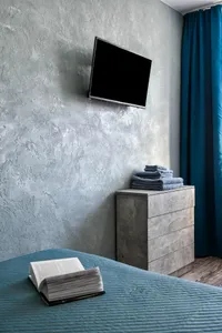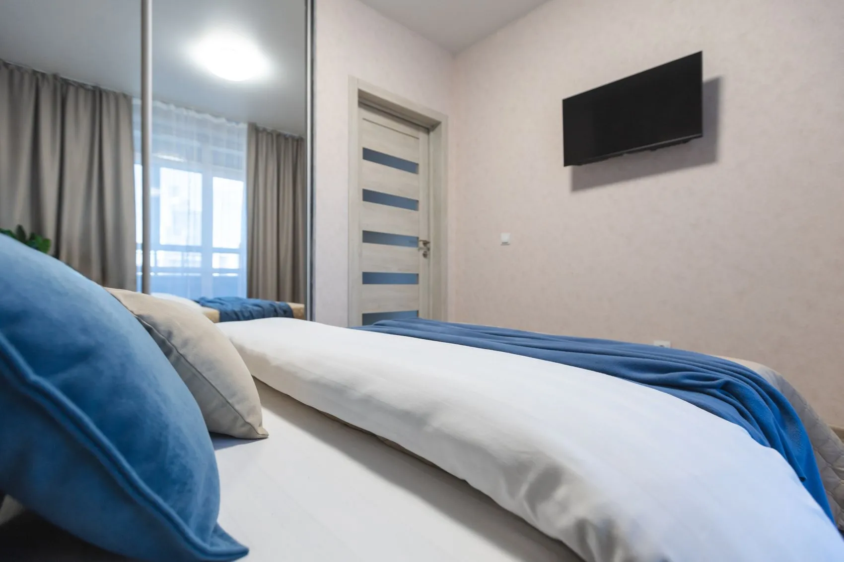 - ✔⭐ В квартире есть телевизор, большая двуспальная кровать и раскладной диван, на котором могут разместиться два человека.