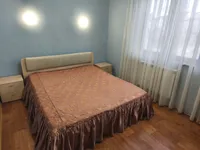 - В первой спальне можно с комфортом расположиться на шикарной двуспальной кровати с качественным матрасом и с уютными прикроватными светильниками. На стене установлен второй ЖК - телевизор. Для максимального удобства предусмотрен стильный туалетный уголок с большим зеркалом. Вещи удобно разместить во вместительном шкафу.