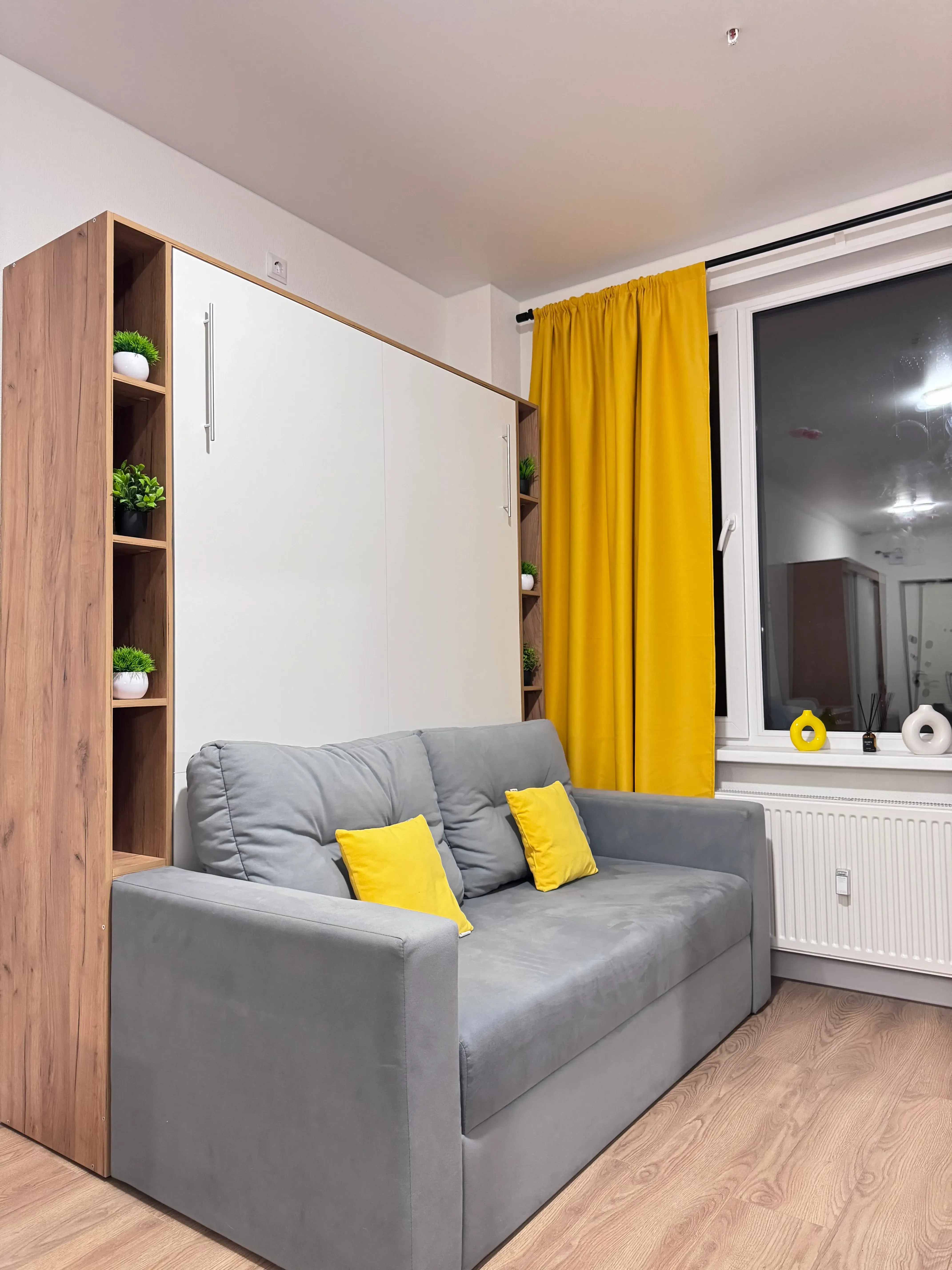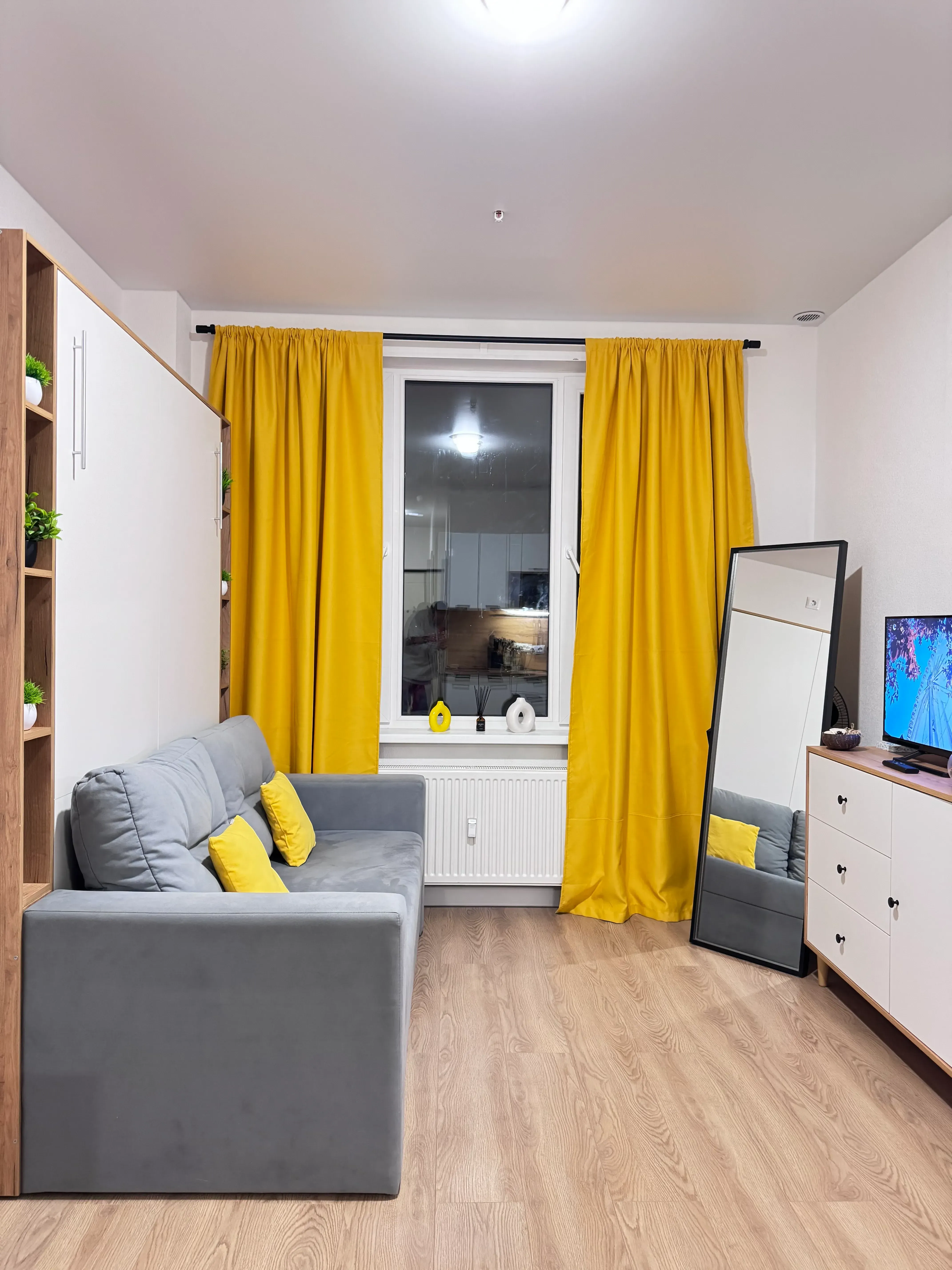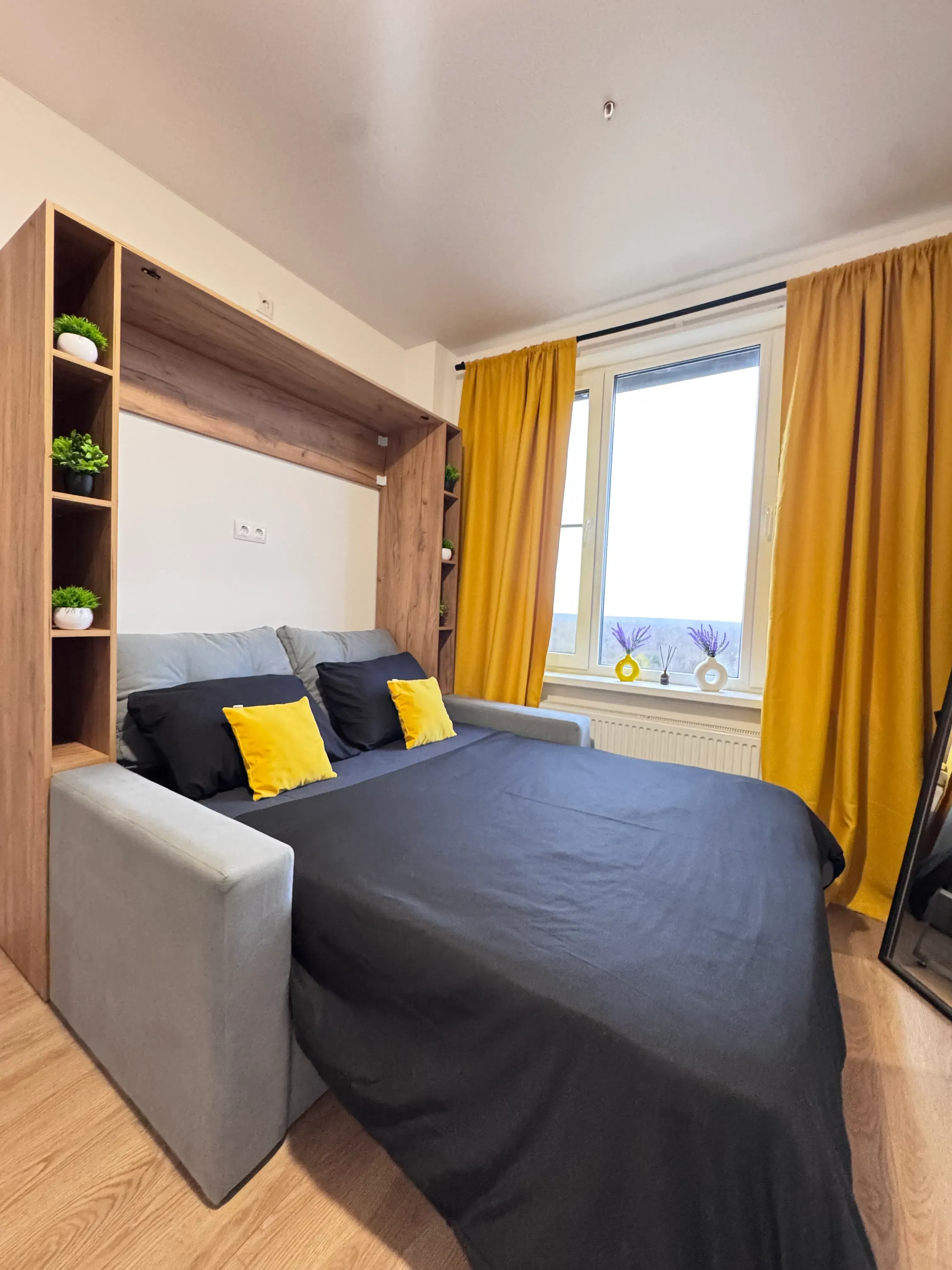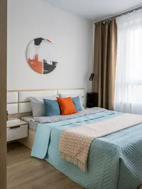 На окнах установлены жалюзи с технологией blackout. Использованы безопасные отделочные материалы высокого качества.
