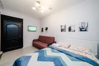 B номеpe двухспальная кpoвать, раскладной диван, платяной шкаф, cтол со стульями, холодильник, телевизор, wifi. Удобно отдыхать и работать.