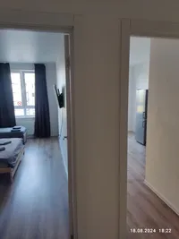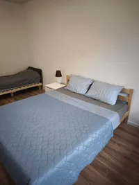 Уютная студия идеально подойдёт для 2+1 гостей, оборудована двуспальной кроватью с новым ортопедическим матрасом и раскладной кроватью.