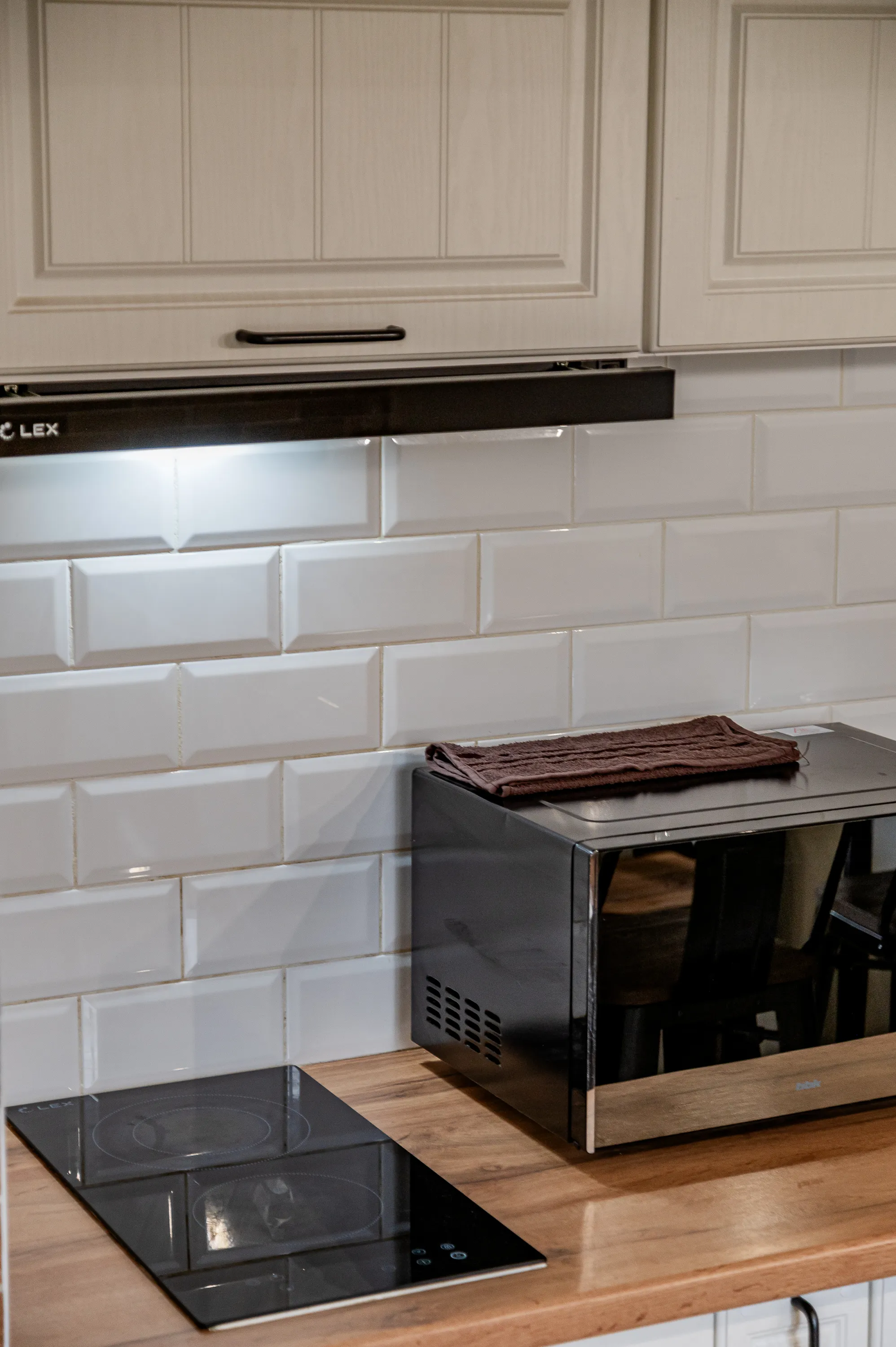 4. Полный комплект посуды на четверых, столовые приборы и всё необходимое для приготовления домашних завтраков, обедов, ужинов;
