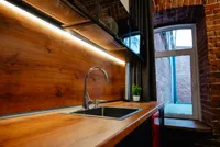Квартира находится в старинном кирпичном доме с высокими потолками 3,5 метра. Интерьер выполнен в стиле лофт с ретро-акцентами — спокойные оттенки, фактуры и продуманные детали создают ощущение уюта и приватности. Ремонт выполнен в 2025 году с вниманием к качеству и атмосфере пространства.