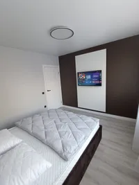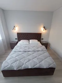 Вас ждет просторная спальня с двуспальной кроватью и удобным диваном-кроватью для дополнительных гостей.