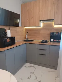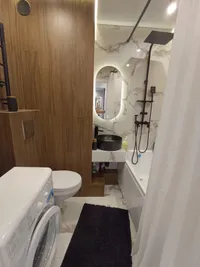 Для вашего комфорта предоставляются все необходимые удобства, такие как телевизор, комплект полотенец, стиральная машина, микроволновка, холодильник, электрический чайник, фен, утюг, гладильная доска, сушилка для одежды.