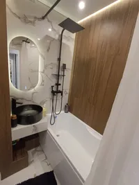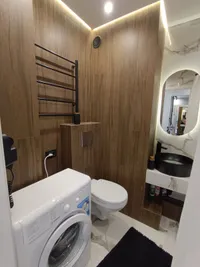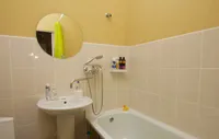 В ванной комнате Вы найдете не только гигиенические принадлежности, но и комплект полотенец, фен и необходимые инструменты для ухода за своей одеждой - утюг, гладильную доску и сушилку для одежды.