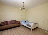 Однокомнатная квартира с комфортной двуспальной кроватью с ортопедическим матрасом и уютным диваном-кроватью.