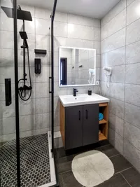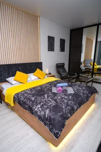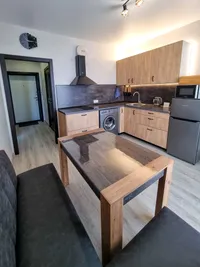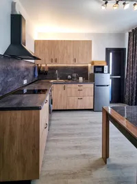 двуспальная кровать с удобным матрасом, 2 дивана-кровати, цифровое TV, машинка-автомат, Wi-Fi, индивидуальный гигиенический набор, чистое постельное белье и полотенца, тапочки, фен, утюг, фильтр для воды, обустроенная кухня со всей необходимой техникой и все, что нужно, чтобы почувствовать себя как дома.