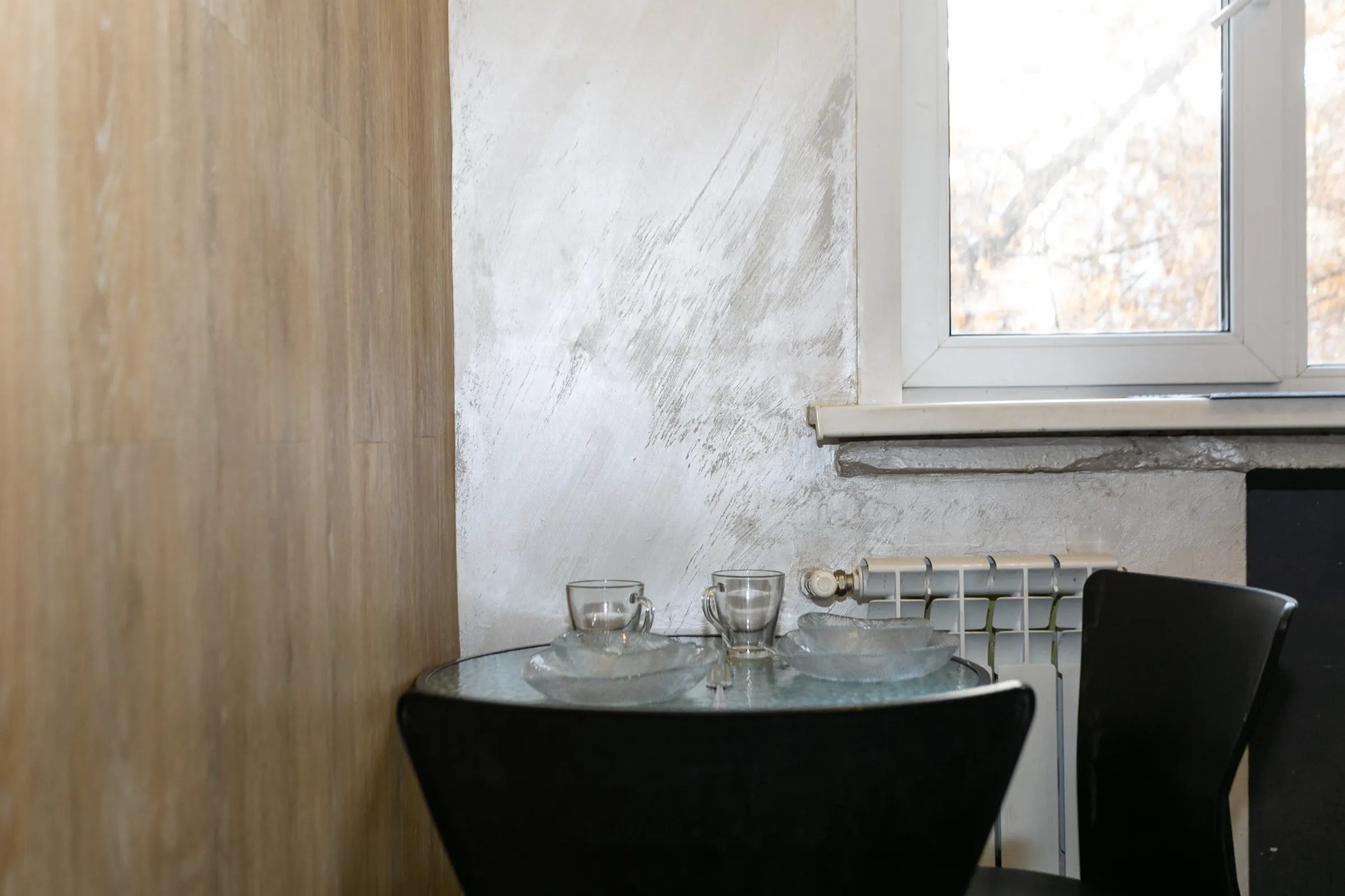 - Стильная обеденная зона с мягким диваном.