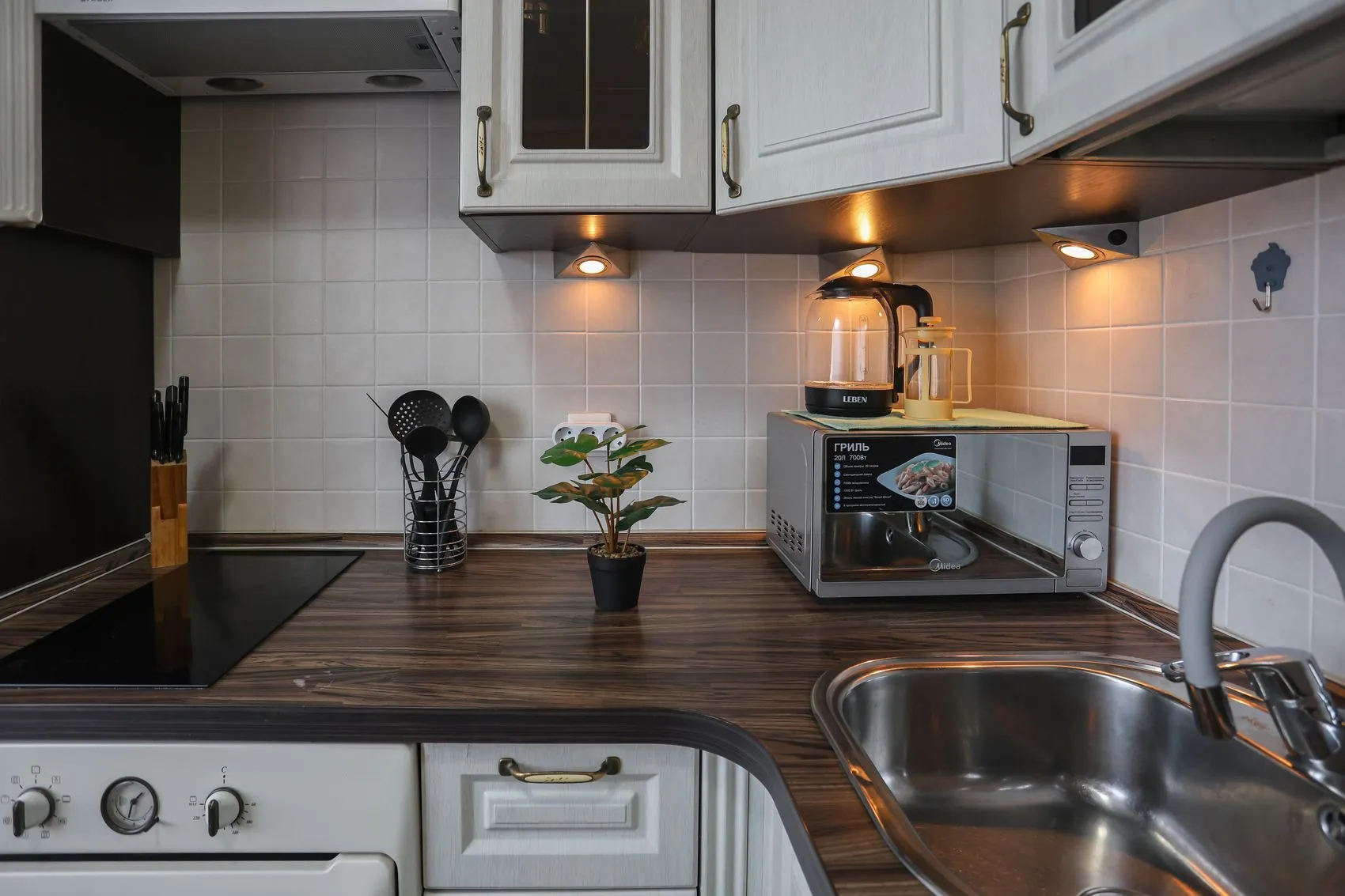 ✅ Кухня в полной комплектации : встроенный холодильник, микроволновая печь/ духовой шкаф. Плита, посуда, посудомоечная машина., кондиционер, болер.
