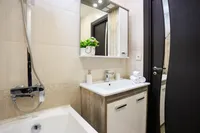 Изысканная квартира с новым ремонтом и мебелью, в новостройке с современной детской площадкой Описание квартиры посуточно Нижневартовск по улице Ленина 58: - Стильная дизайнерская квартира в новостройке с новым евроремонтом, новой мебелью и наличием двух телевизоров, с максимальным комфортом разместит до четырех гостей. Новый высотный дом с закрытым двором и современной детской площадкой, имеет два выхода на улицу и видеонаблюдение по всему периметру. Рядом расположены остановки общественного транспорта и продуктовые магазины. - В дизайнерской спальне размещена прекрасная двуспальная кровать с ортопедическим матрасом. Портьеры обеспечат светоизоляцию и безмятежный сон. ЖК-телевизор со множеством каналов и прикроватные тумбочки со светильниками, помогут комфортно провести вечерний досуг. Белоснежный шкаф позволит удобно разместить вещи. - Многофункциональная гостиная удачно объединена с кухонной зоной современной студией. В комнате выполнен свежий евроремонт и установлена новая мебель. Мягкий комфортный диван, ЖК-телевизор и Wi-Fi обеспечат гостям приятный отдых и досуговое времяпрепровождение. При необходимости диван легко трансформируется в полноценное двуспальное место. Стильные аксессуары и мягкий свет торшера создают атмосферу настоящего домашнего комфорта. - В кухонной зоне установлен новый классический гарнитур. В наличии вся необходимая бытовая техника, а также полный комплект разнообразной посуды и кухонной утвари на четыре персоны гостей. Круглый прозрачный стол и удобные стулья составляют комфортную обеденную зону, которая порадует приятной трапезой и ароматным чаепитием. - Чистейший санузел оборудован белоснежной новой сантехникой. К услугам гостей стиральная машина-автомат, фен и другие принадлежности, необходимые для полноценного личного ухода. Что находится РЯДОМ: остановки общественного транспорта, гипермаркет Магнит, магазин Рыбное место, магазин Цветы, магазин суши, кафе быстрого питания, окружная клиническая больница, парк развлечений Радуга, мыловарня. Почему гости отдают предпочтение нашим квартирам: - уютно как дома; - выглаженное белоснежное постельное белье из качественного материала; - махровые полотенца банные и для лица; - действительно чистые квартиры; - высокоскоростной WI-FI; - посуда, кухонные приборы и принадлежности для приготовления пищи по своему вкусу; - фен, утюг, гладильная доска, стиральная машина автомат, сушилка для белья. Услуги наших партнёров: - трансфер от аэропорта и ЖД-вокзала. Заселение КРУГЛОСУТОЧНО!!! Время заезда - после 14.00, время выезда - до 12.00 Заселение строго от 22 лет! Внимание!!! Наши квартиры не сдаются на торжества и различные мероприятия. Скидки при постоянном сотрудничестве. ЗАЕХАВ ОДИН РАЗ В НАШИ КВАРТИРЫ, ВАМ БОЛЬШЕ НЕ ЗАХОЧЕТСЯ ОСТАНАВЛИВАТЬСЯ У ДРУГИХ.