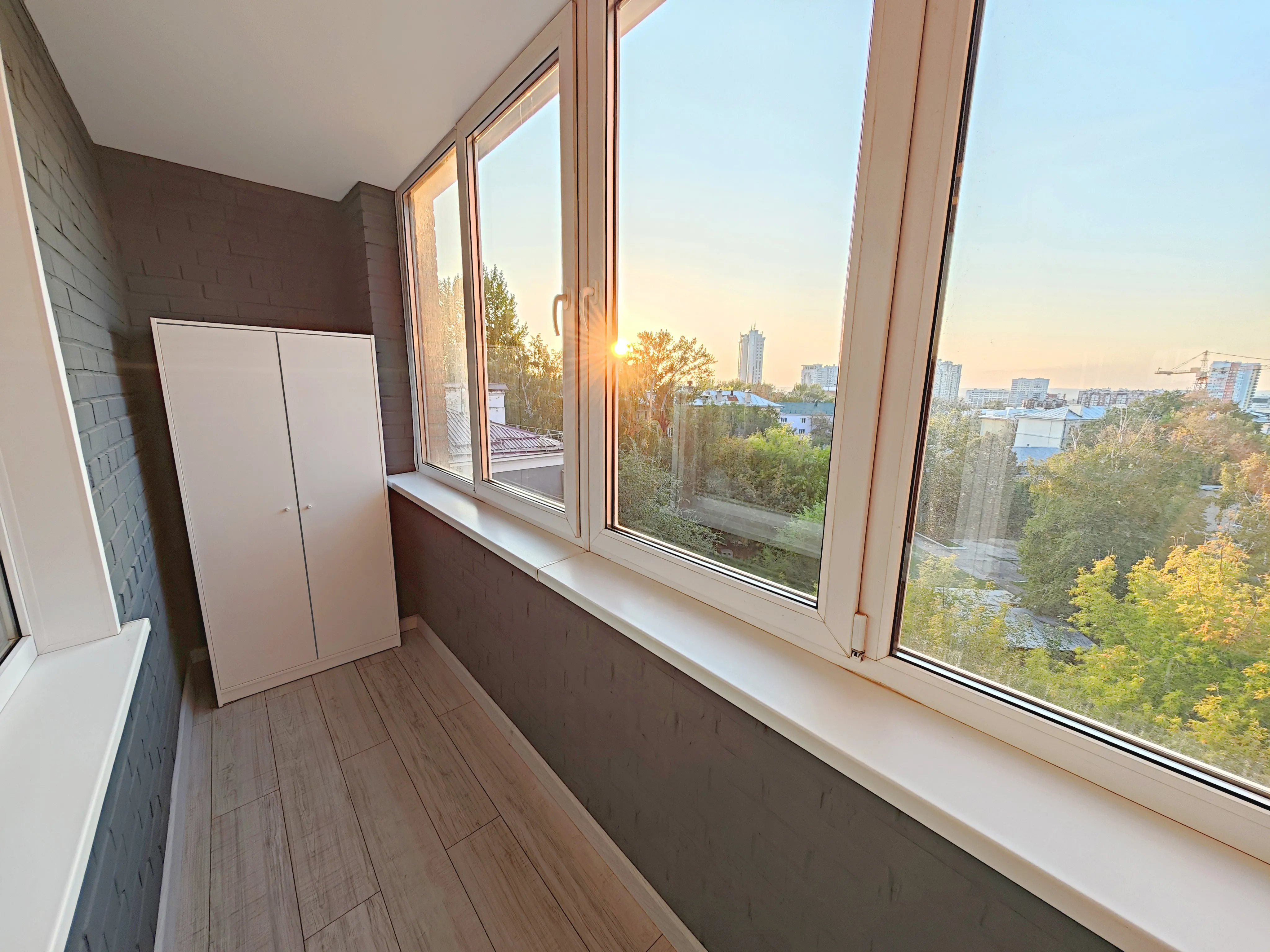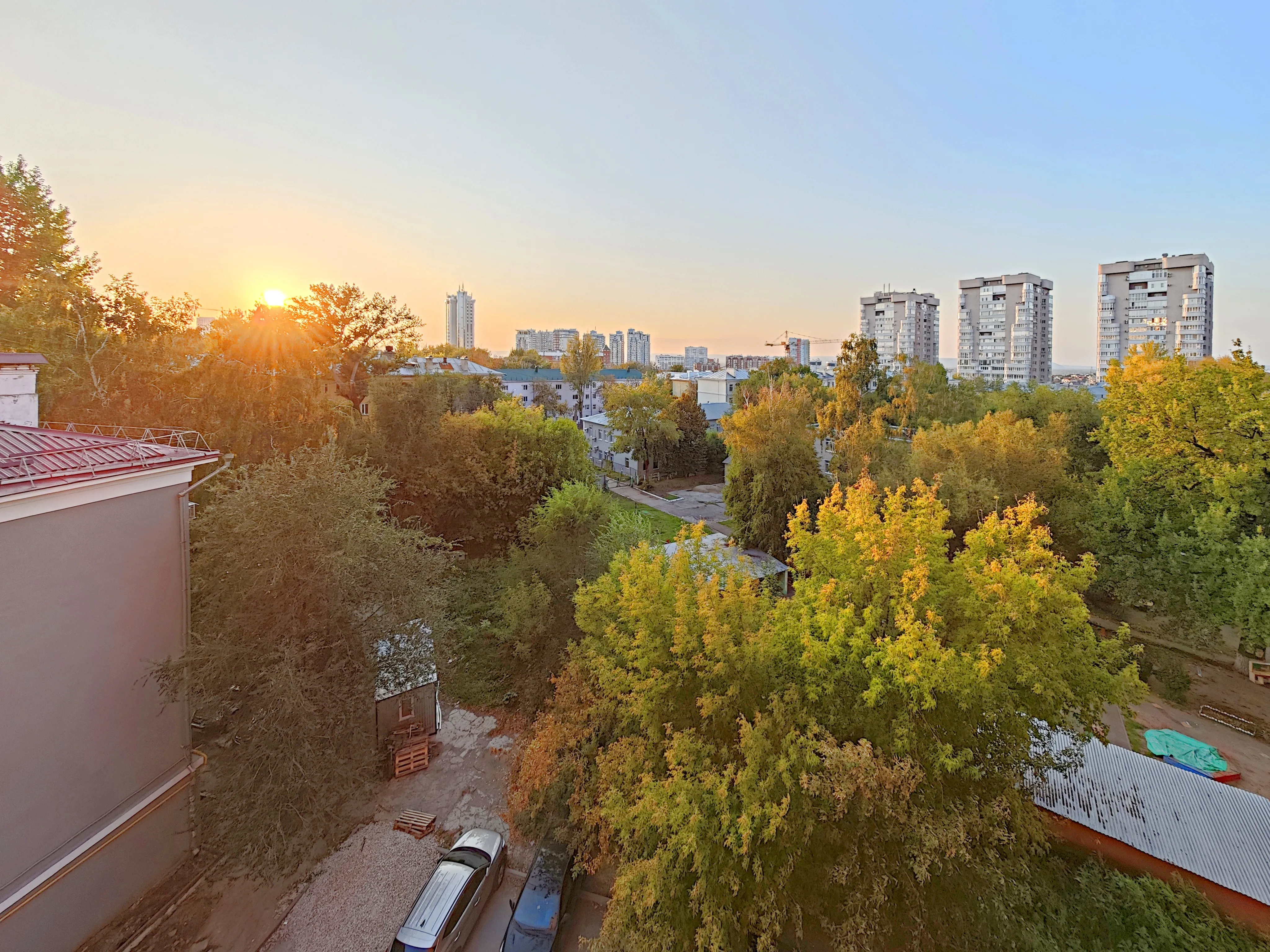 Вечером и ночью с балкона видно, как светятся колесо обозрения в парке им.Гагарина и Телебашня, которая оборудована световыми гирляндами и прожекторами.