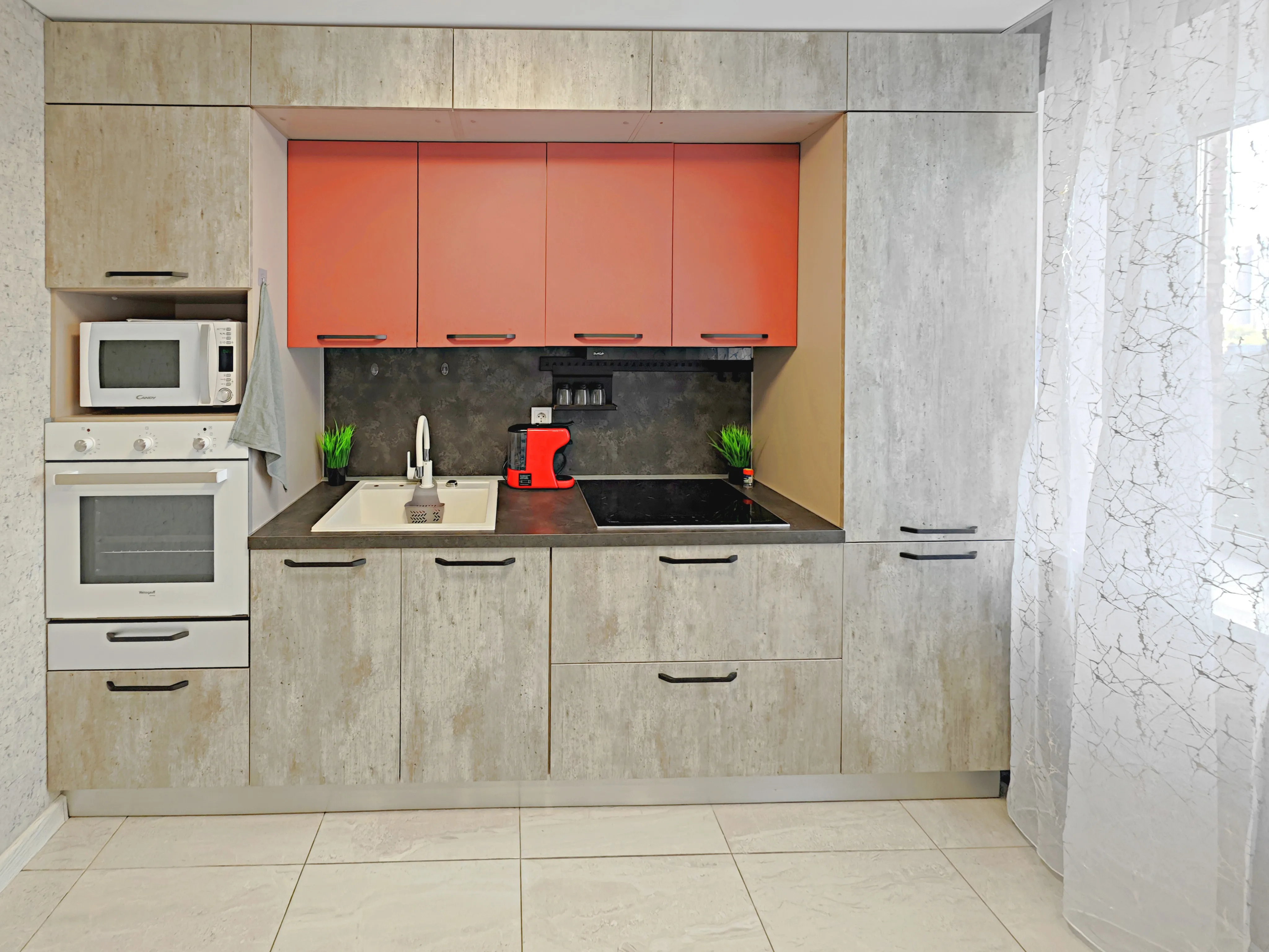 ✔️ на кухне - газовая плита, СВЧ печь, электрический чайник, холодильник, посуда, кастрюли, вилки-ложки и остальные принадлежности, а также прочие необходимые мелочи;