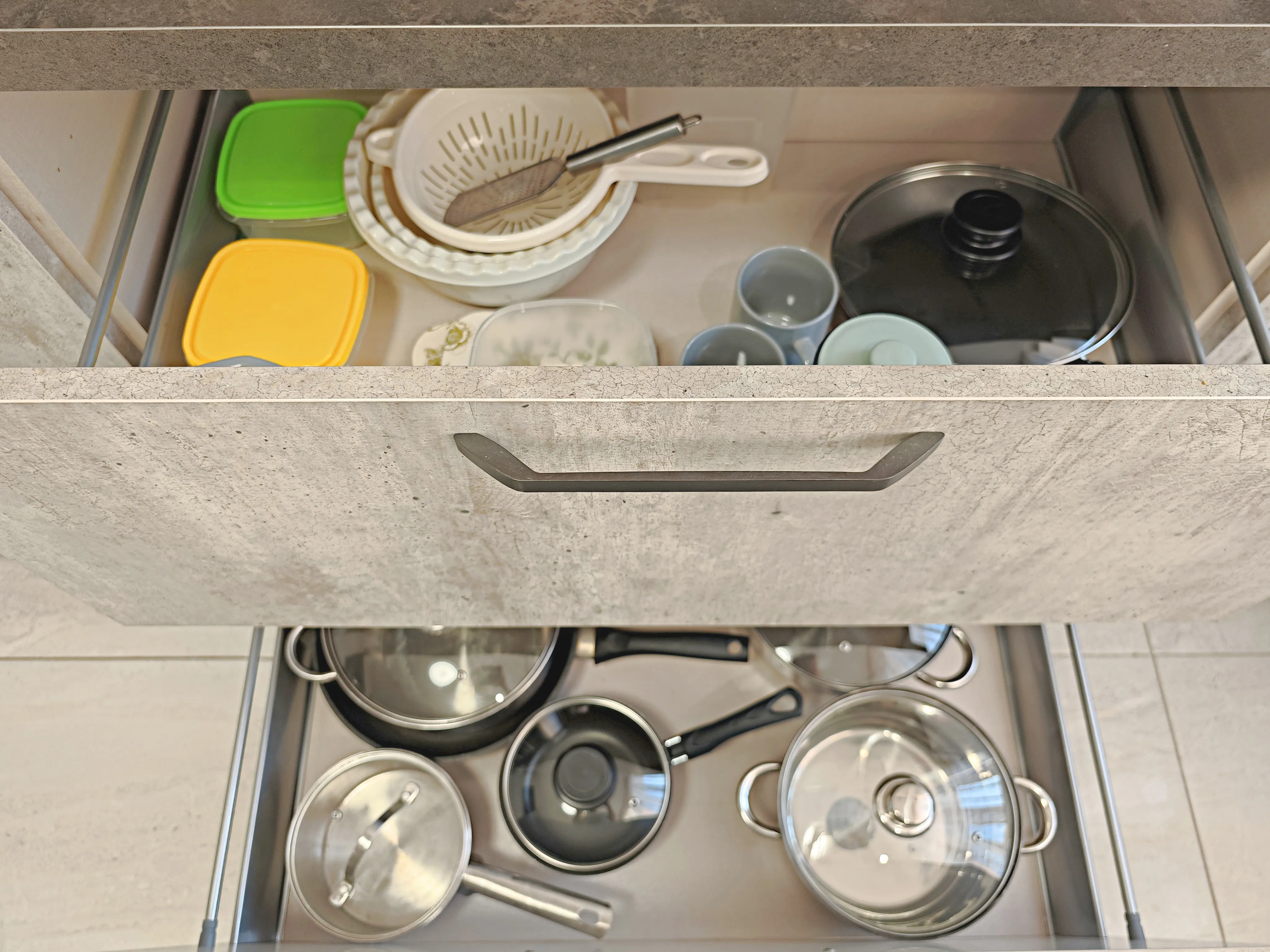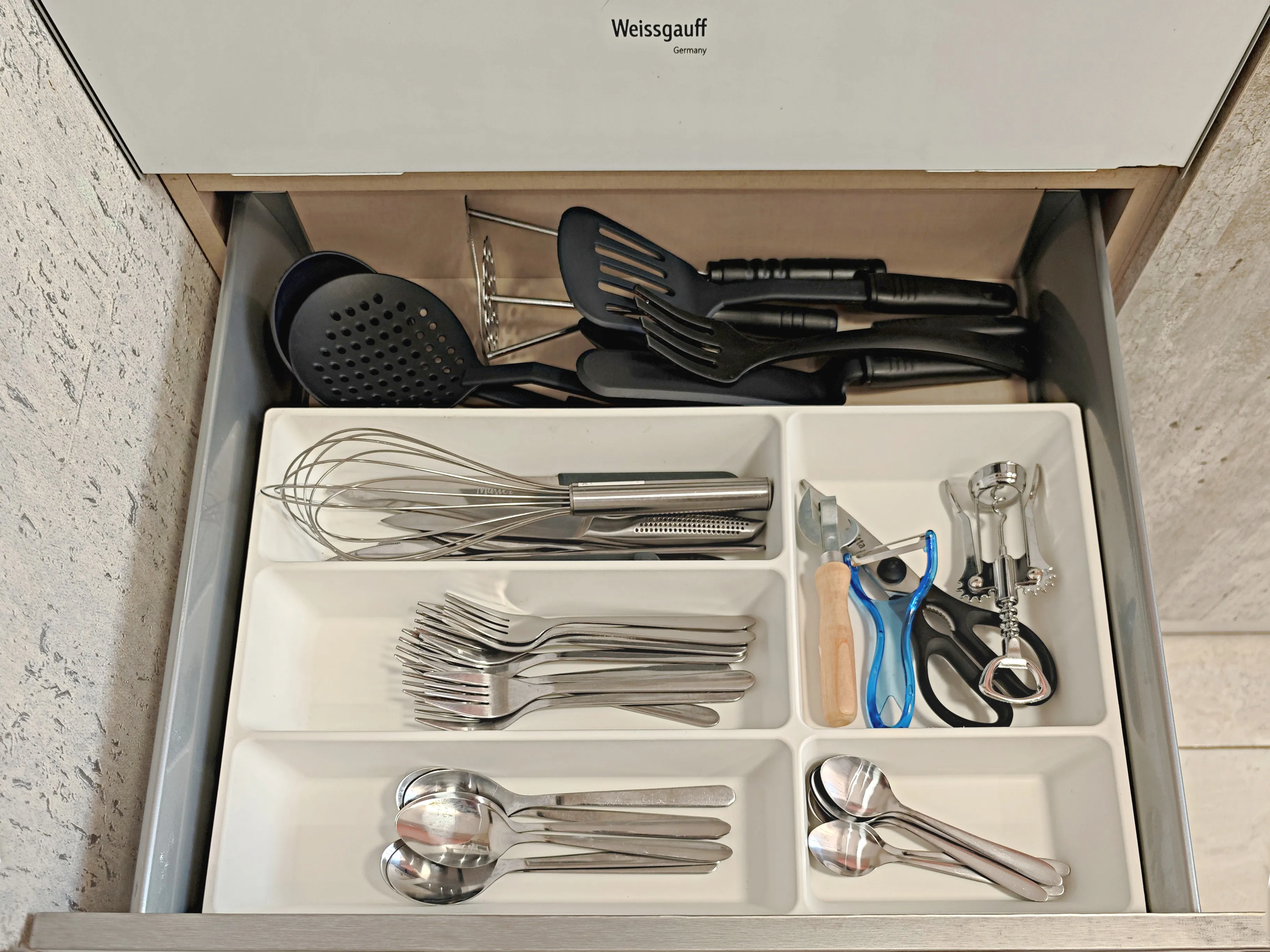 • Посуда (тарелки, стаканы, кастрюли, сковорода), столовые приборы;
