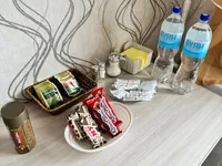 ☕ Дорогие гости, в квартире вас ожидает набор продуктов первой необходимости – пакетированный чай, кофе, сахар, соль, перец в одноразовых стиках.