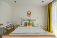 Спальные места: Одна двуспальная кровать и удобный односпальный диван – комфортное размещение для 3 гостей.