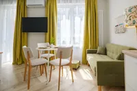 ✅ Апартаменты: комфорт и стиль в районе Светлана! ✅ Описание: Приглашаем вас в современные апартаменты в одном из лучших районов Сочи — Светлана! Всего в 200 метрах от моря, вы сможете насладиться всеми прелестями курортного отдыха. ✅ Бесконтактное заселение: Мы заботимся о вашем здоровье — апартаменты обрабатываются озонатором после каждого выезда. ✅ Удобства в апартаментах: - Двуспальная кровать и раскладной диван для комфортного размещения до 4-х человек - Свежие постельное белье и мягкие полотенца - Полностью оборудованная кухня (холодильник, электроплита, микроволновка, электрический чайник) - Высокоскоростной Wi-Fi и смарт TV - Кондиционер, фен, средства гигиены ✅ Инфраструктура: - Кофейня в лобби для утреннего кофе и завтрака - SPA-центр (за дополнительную плату) - Пешая доступность к центральной набережной, ресторанам, кафе и магазинам - Супермаркет "Перекресток" прямо напротив отеля ✅ Транспорт: Остановка общественного транспорта "Светлана" в 100 м — всего 10 минут до ЖД вокзала Сочи. Мы можем помочь с вызовом такси или трансфером по запросу. ✅ Залог: При заселении взимается залог 5.000₽, который возвращается при выезде. Заезд с 15 часов. Выезд до 12 часов. ✅ Экскурсии: Выбор экскурсий по специальной цене — прайс находится в квартире. ✅ Скидка 10% для повторных гостей! Чтобы забронировать, выберите даты в календаре для актуальных цен и занятости. Мы готовы сделать ваше пребывание максимально комфортным. Желаем приятного отдыха! С уважением, Елена.