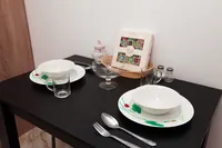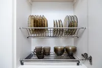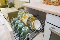 Техника: Полный набор бытовой техники, включая кондиционер, холодильник, плиту, микроволновку, стиральную машину, телевизор, фен, утюг и даже посудомоечную машину!
