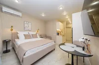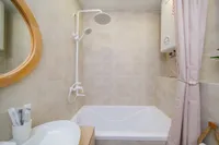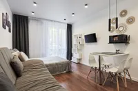 Современный, продуманный ремонт, теплые полы. Организована кухонная зона, со всей необходимой техникой, спальное место два удобных раскладных дивана, система ночного освещения, шторы блэкаут. В студии комфортного разместятся 2-4