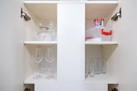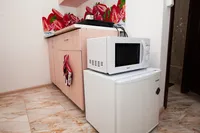 - На кухне: свч-печь, электрочайник, холодильник, необходимая посуда