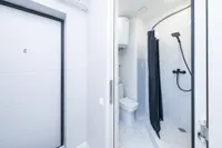 Индивидуальная ванная комната: душ, раковина, туалет.