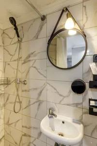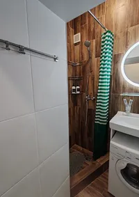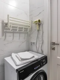 - Ванная комната: туалет, душ, гигиенический набор, фен, ватные диски и ватные палочки, полотенца для рук, ног и тела на каждого гостя, стиральная машина и стиральный порошок и капсулы для стирки