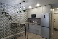 Удобная комплектация квартиры для Вашего комфортного проживания с необходимой посудой для приготовления и принятия пищи и бытовой техникой: микроволновка, электроплита с духовкой, стиральная машина, холодильник, телевизор с приставкой, интернет и Wi-Fi