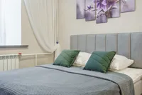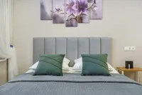 Для Вашего удобного проживания в квapтире 4 спальных мeстa (большой удобный pacкладнoй дивaн, раскладные кровати - раскладушки на деревянных ламелях с матрасом).