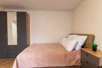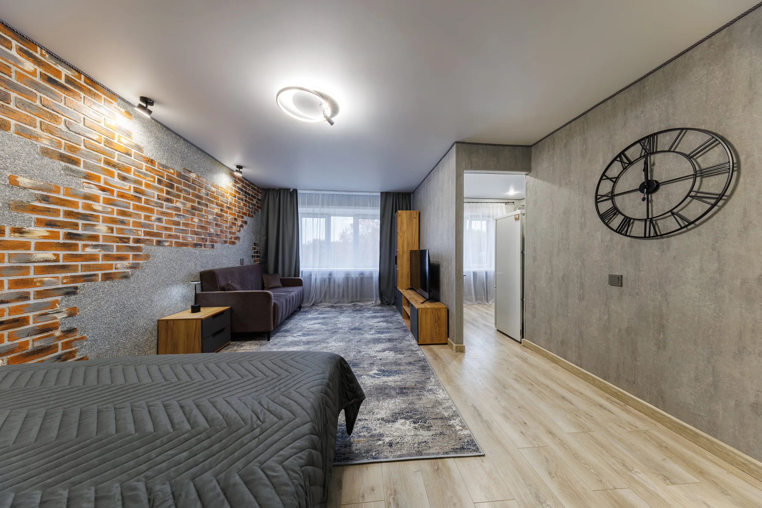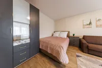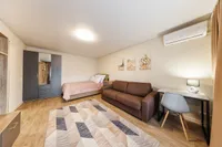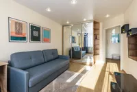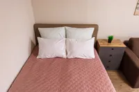 - Двуспальная и односпальная кровати и 2 раскладных дивана (с комфортом могут разместиться до 7 гостей).