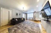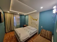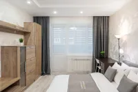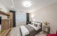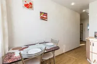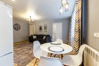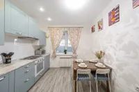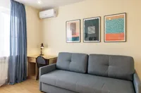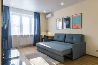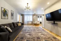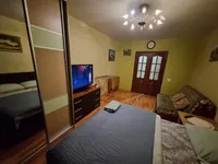 Квартира после качественного ремонта, оснащена жк-телевизором, стиральной машинкой-автомат, а также удобной мебелью, которая с комфортом может разместить до 5 гостей. Для более приятного времяпрепровождения, в вашем распоряжении безлимитный интернет wi-fi, кабельное tv. Кроме того, вам предоставляются: фен, утюг, гладильная доска, постельное белье, полотенца, тапочки, мыло, соль, сахар. Оборудованная кухня оснащена всей необходимой посудой и бытовой техникой – свч-печь, холодильник, чайник, газовая плита, где вы можете приготовить себе завтрак, обед и ужин.